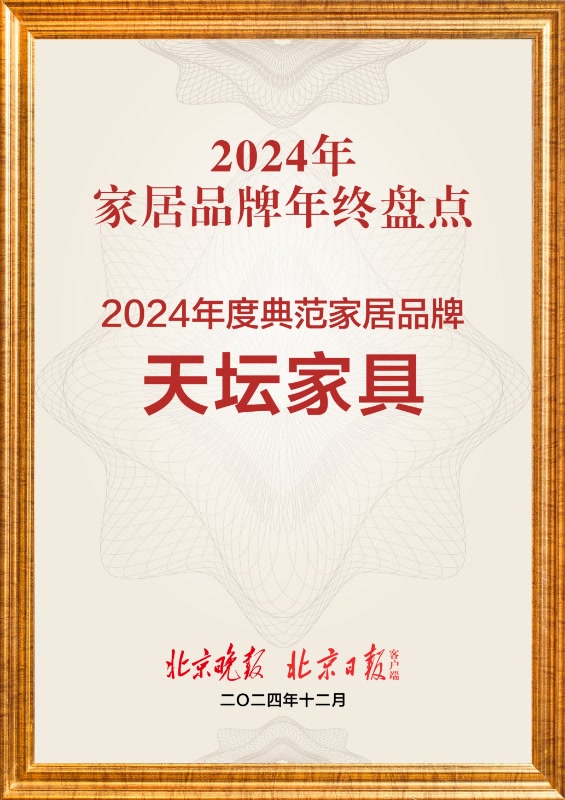2024年的家居行业,无疑是在“焕新”中寻求机遇,在机遇中寻求突破的一年。12月26日,北京晚报、北京日报APP推出《焕新——2024年度家居行业年终盘点》,并推选出2024年度十大典范家居品牌。其中,天坛家具凭借良好的口碑和市场认可度,荣膺“2024年度典范家居品牌”。