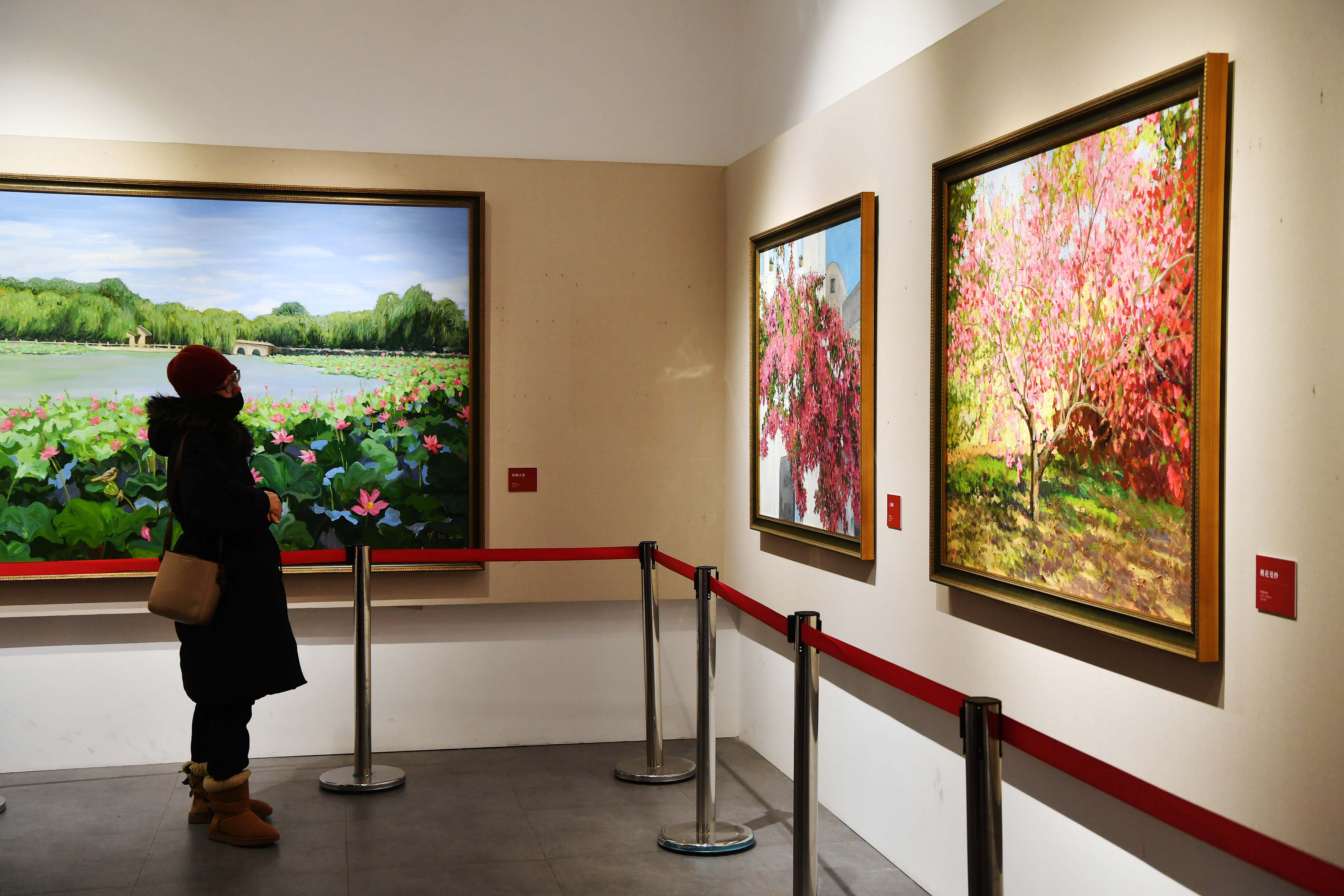 迎新年,上新展。12月29日,由北京市中山公园管理处、中央美术学院、北京文化发展基金会联合主办的“名花名画竞放新时代”系列艺术展《繁花迎瑞——林笑初油画艺术展》在中山公园七间房展厅开展。中山公园的郁金香、紫藤花、桃花……来自中央美术学院教授林笑初极具中国意境的30幅油画作品,以花为题材,记录了北京公园的美好景致,展现了中山公园花园式的审美意趣。