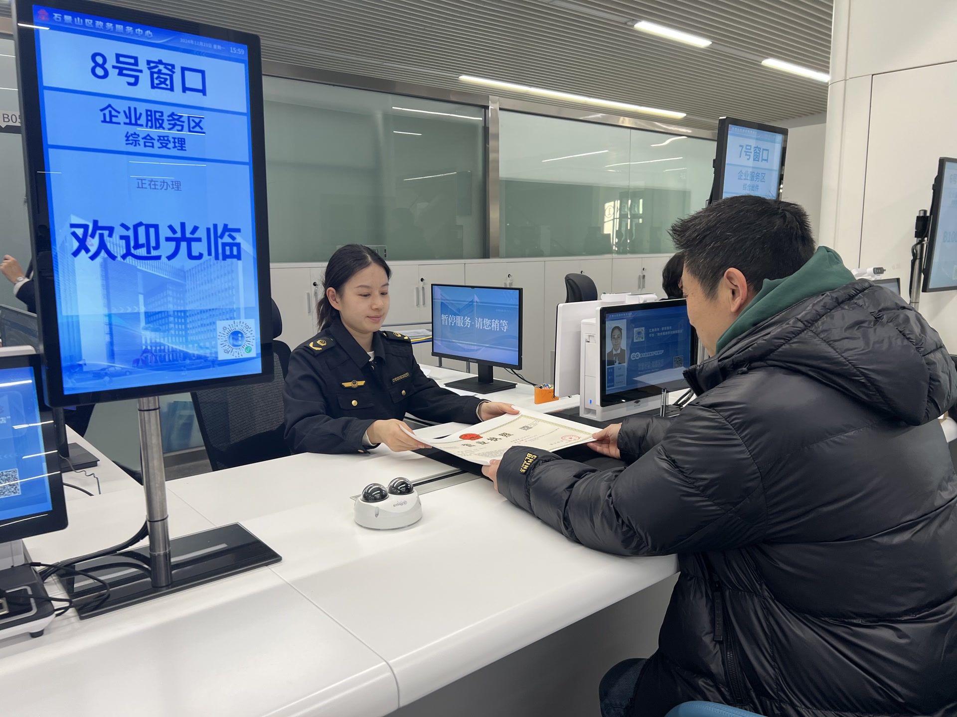 近日,石景山区市场监管局登记注册环节发出政务服务大厅新址启动以来首张营业执照,全力助力企业快速落地。