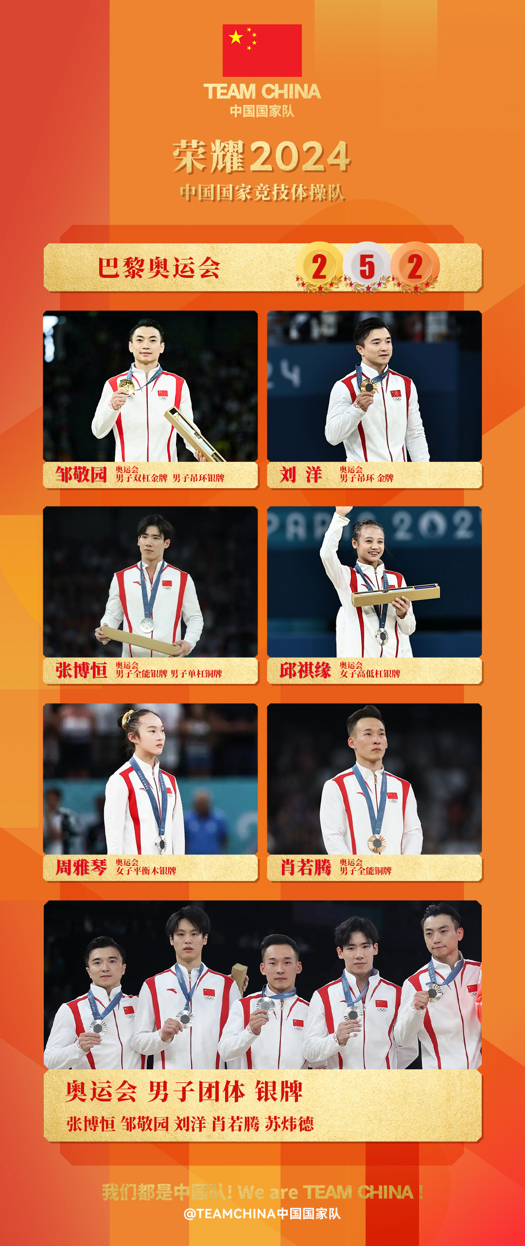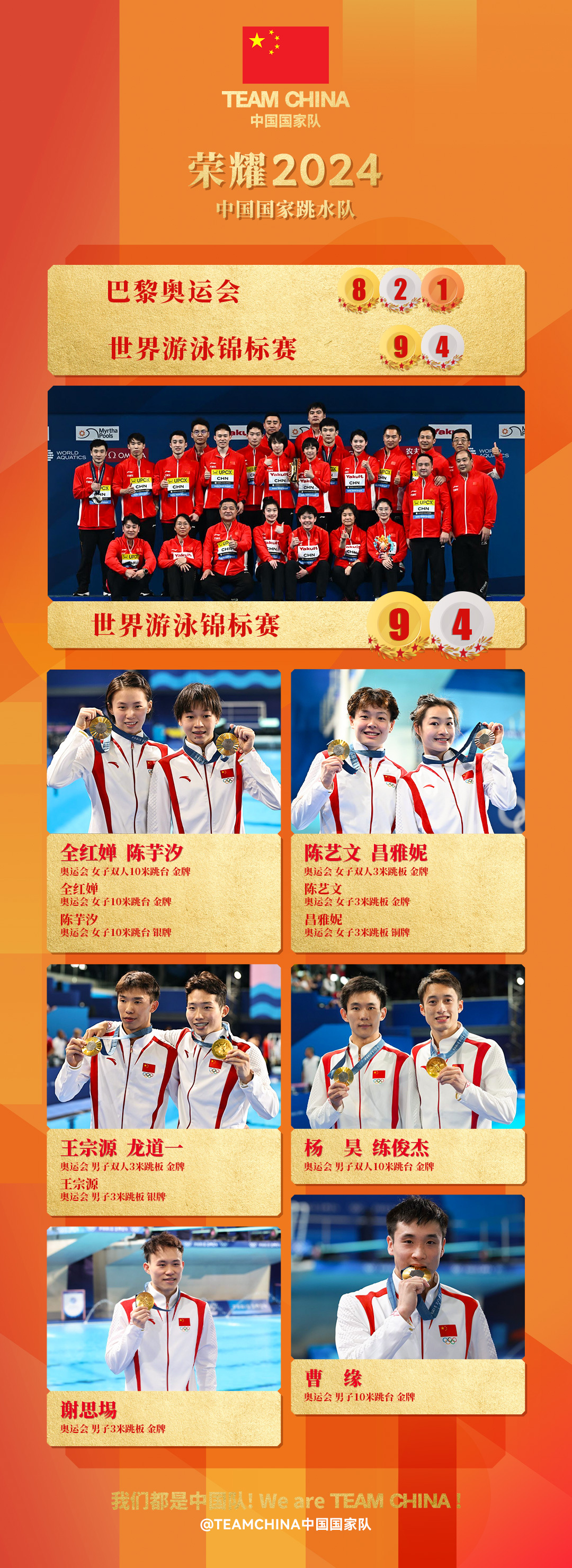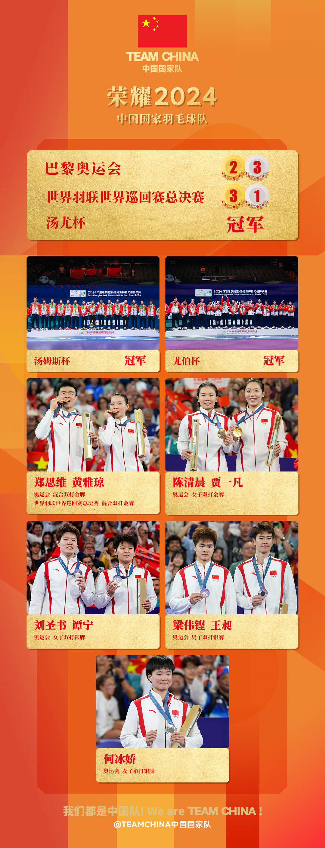 近日,TEAMCHINA中国国家队发布系列海报,盘点2024中国队荣耀时刻。海报持续更新中,你对哪些拼搏瞬间印象深刻?