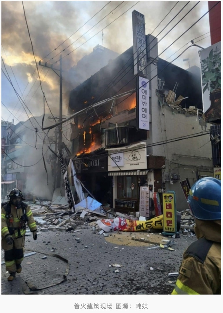 据韩国《每日经济新闻》等韩媒报道,当地时间12月29日下午1时47分许,韩国京畿道平泽市一栋3层建筑3楼发生火灾,并发出爆炸声,造成3人受伤。