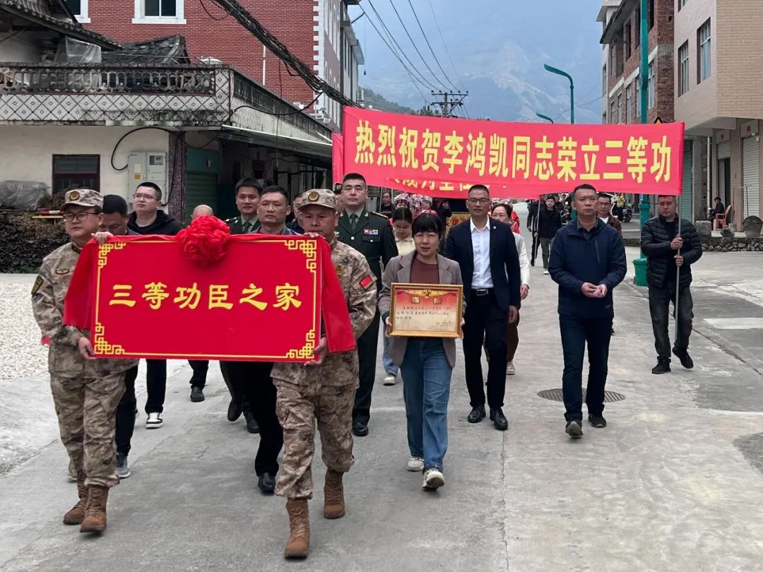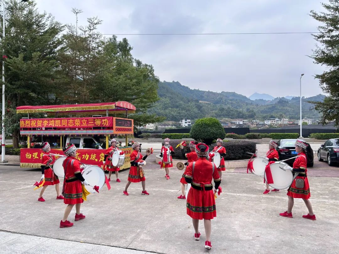 当地军地领导敲锣打鼓送喜报
