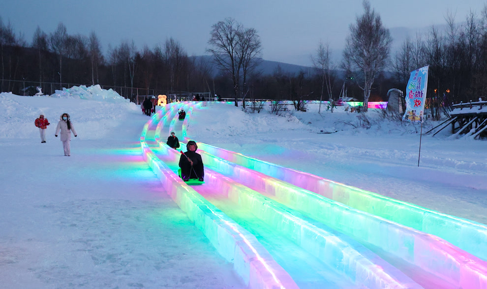 夜幕降临,园区冰雪景观同时亮起缤纷的彩灯,霓虹灯下的冰雪城堡美轮美奂,形态各异的冰雪滑梯上传来阵阵欢呼,大型雪雕附近的游客纷纷拍照打卡。在辞旧迎新之际,这里成为一座梦幻的童话王国,入园人数达5万余人次。