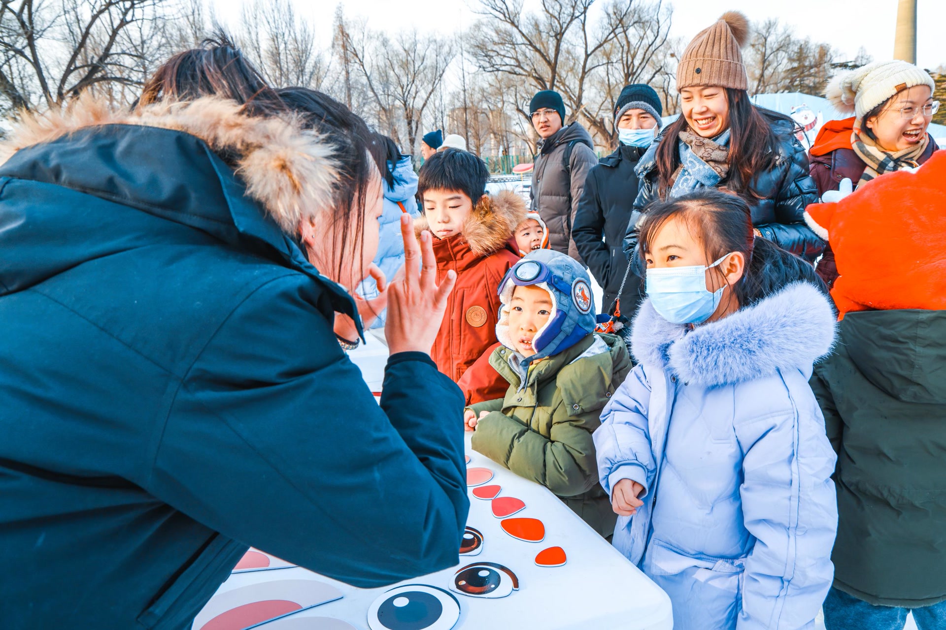 记者在现场看到,玉渊潭公园开展的“冰雪迎新送祝福”活动吸引了不少游客驻足参与,活动共分为“新年祈福”好运连连、“眉开眼笑”妙趣横生、“好事发生”手工制作三项内容。