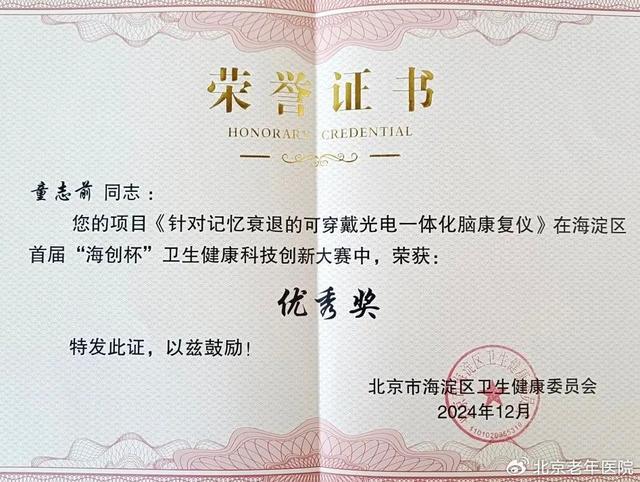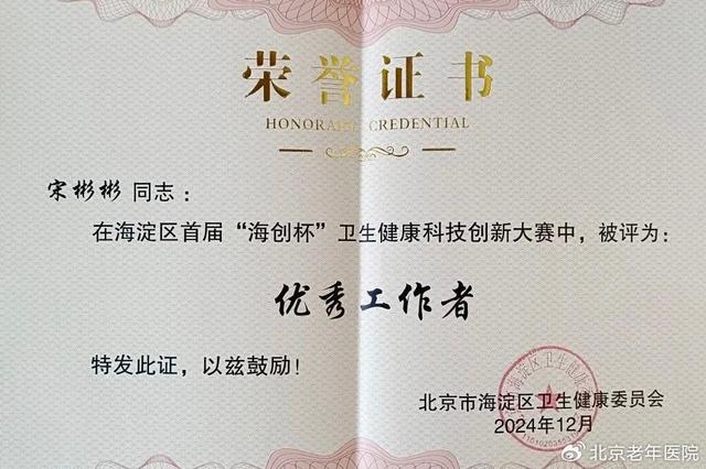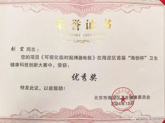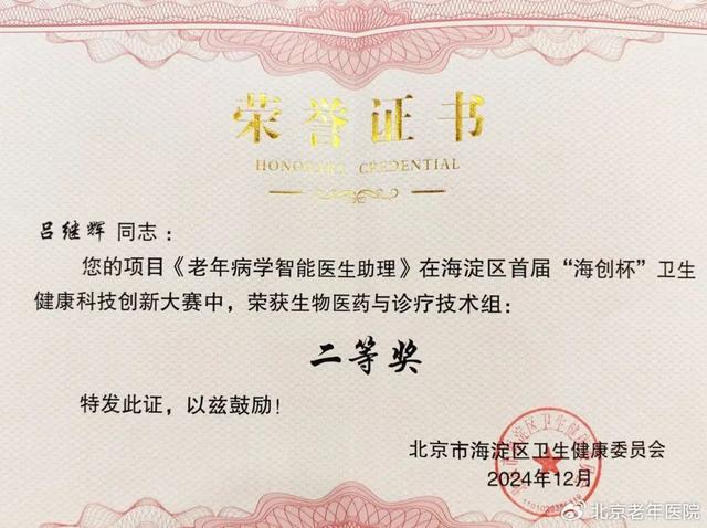 为促进医学科技创新,助力生物医药产业发展,积极探索高新科技场景临床转化机制建设,推动医疗卫生机构、生物医药企业协同联动,2024年9月,海淀区卫生健康委启动首届“海创杯”卫生健康科技创新大赛。经过社会发动、单位推荐、作品初评、集中评审,北京老年医院共有3个项目入围决赛。