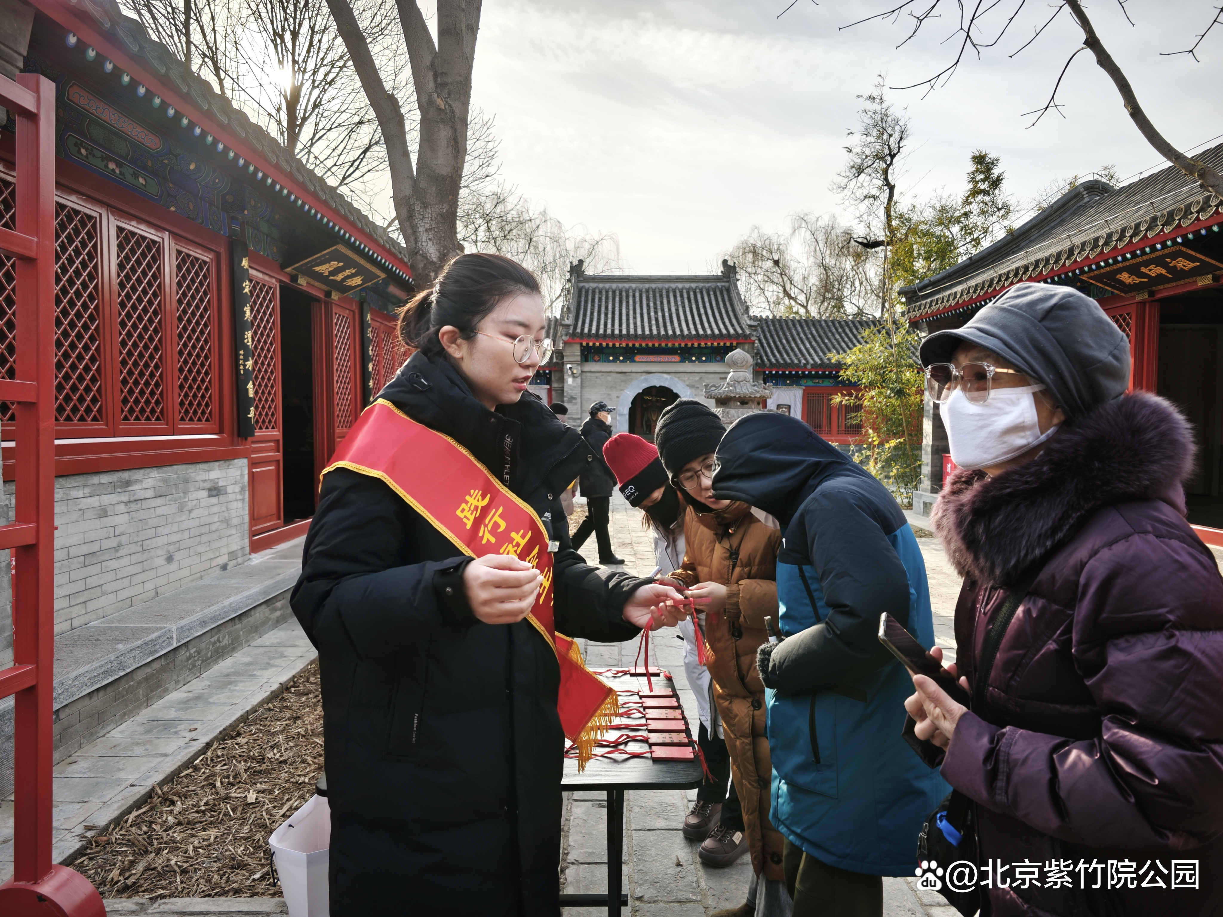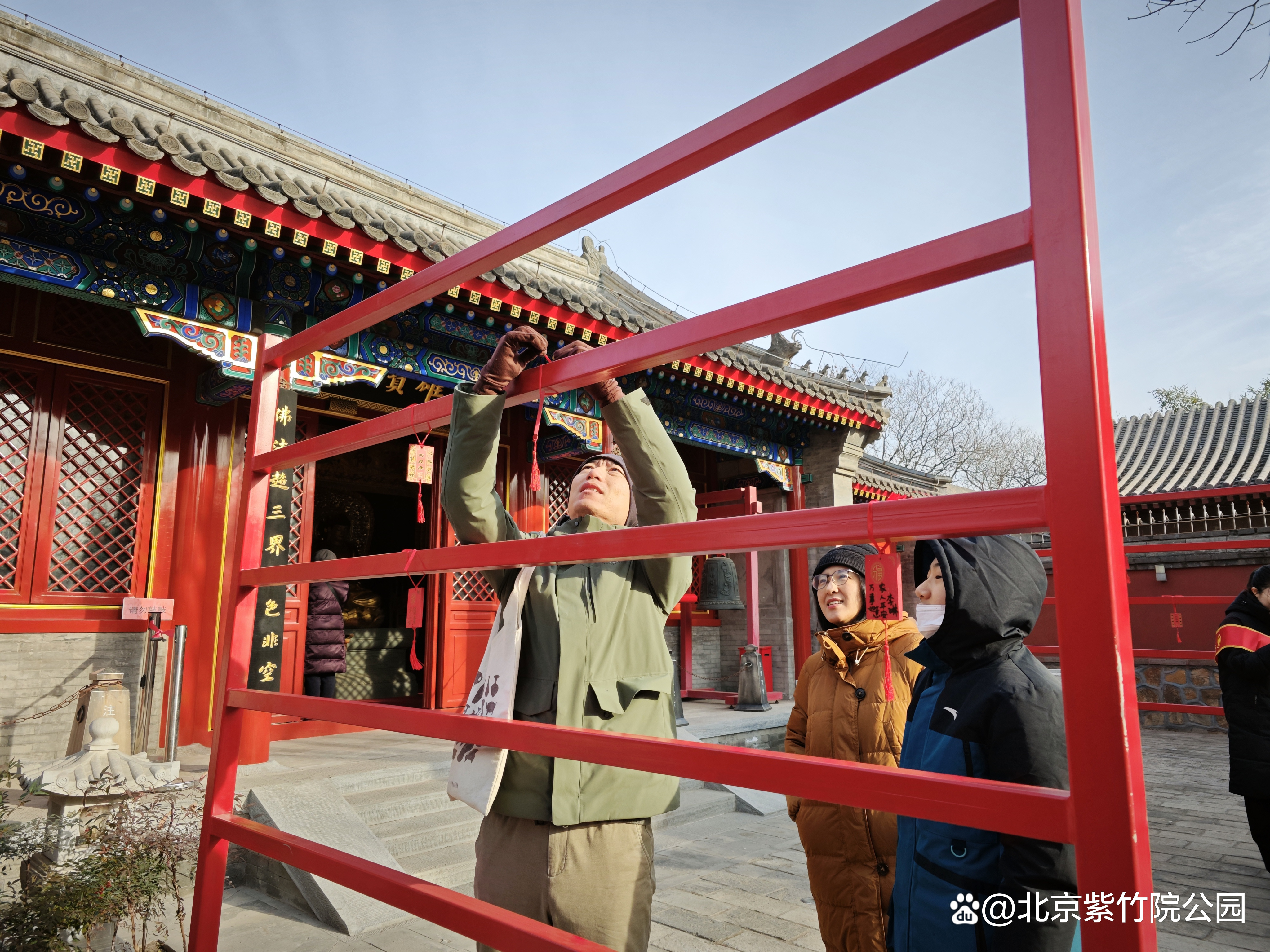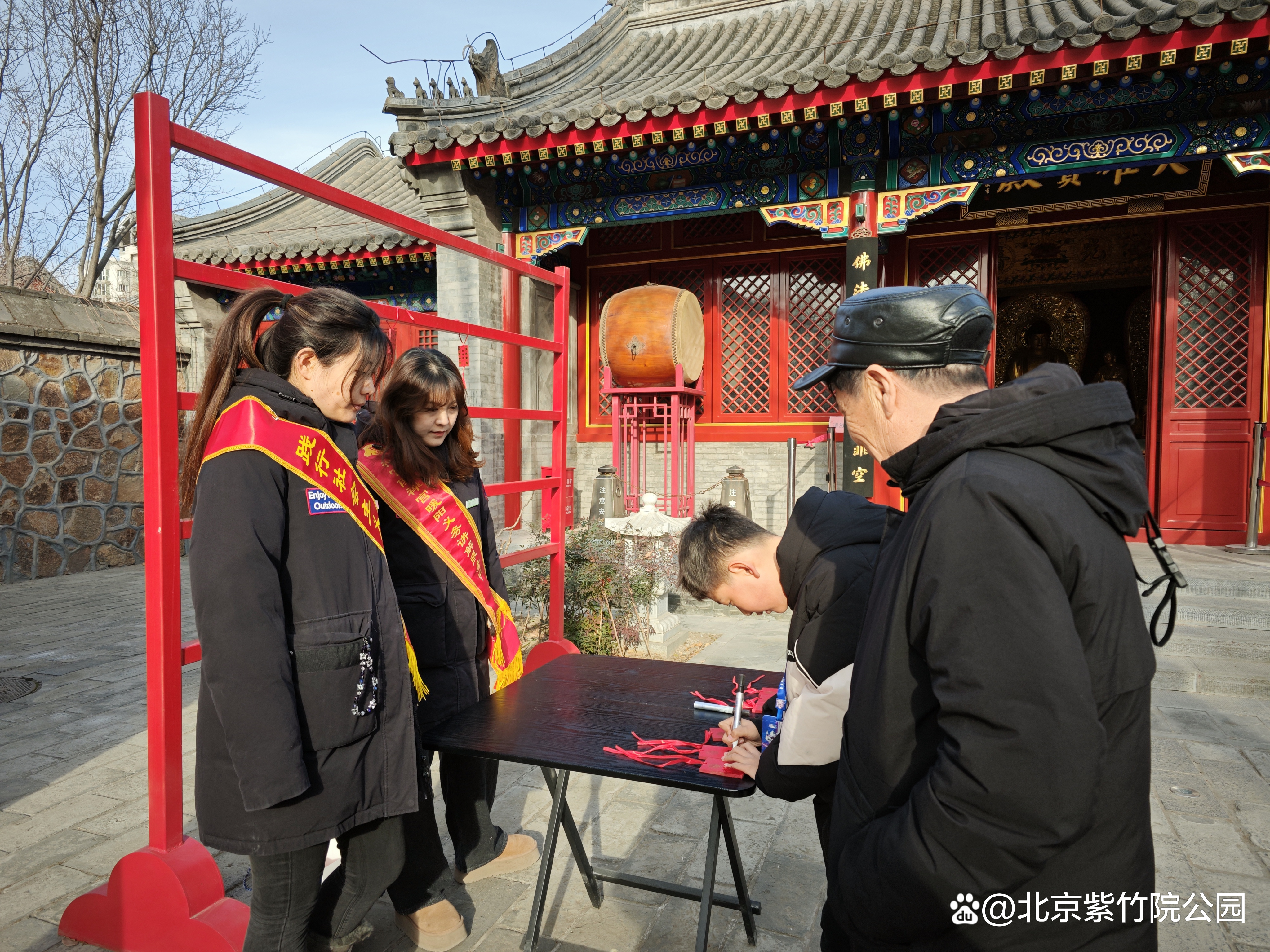 元旦上午,紫竹院行宫举办了新年祈福活动。游客们在工作人员的带领下,深入了解行宫的历史文化,并亲手写下福牌,寄托对新年的美好祝愿,为节日增添了一份浓厚的文化氛围。