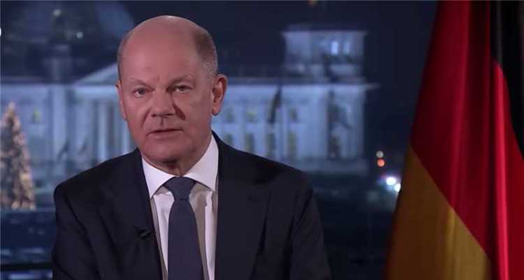 朔尔茨发表新年致辞画面 图源:外媒视频截图