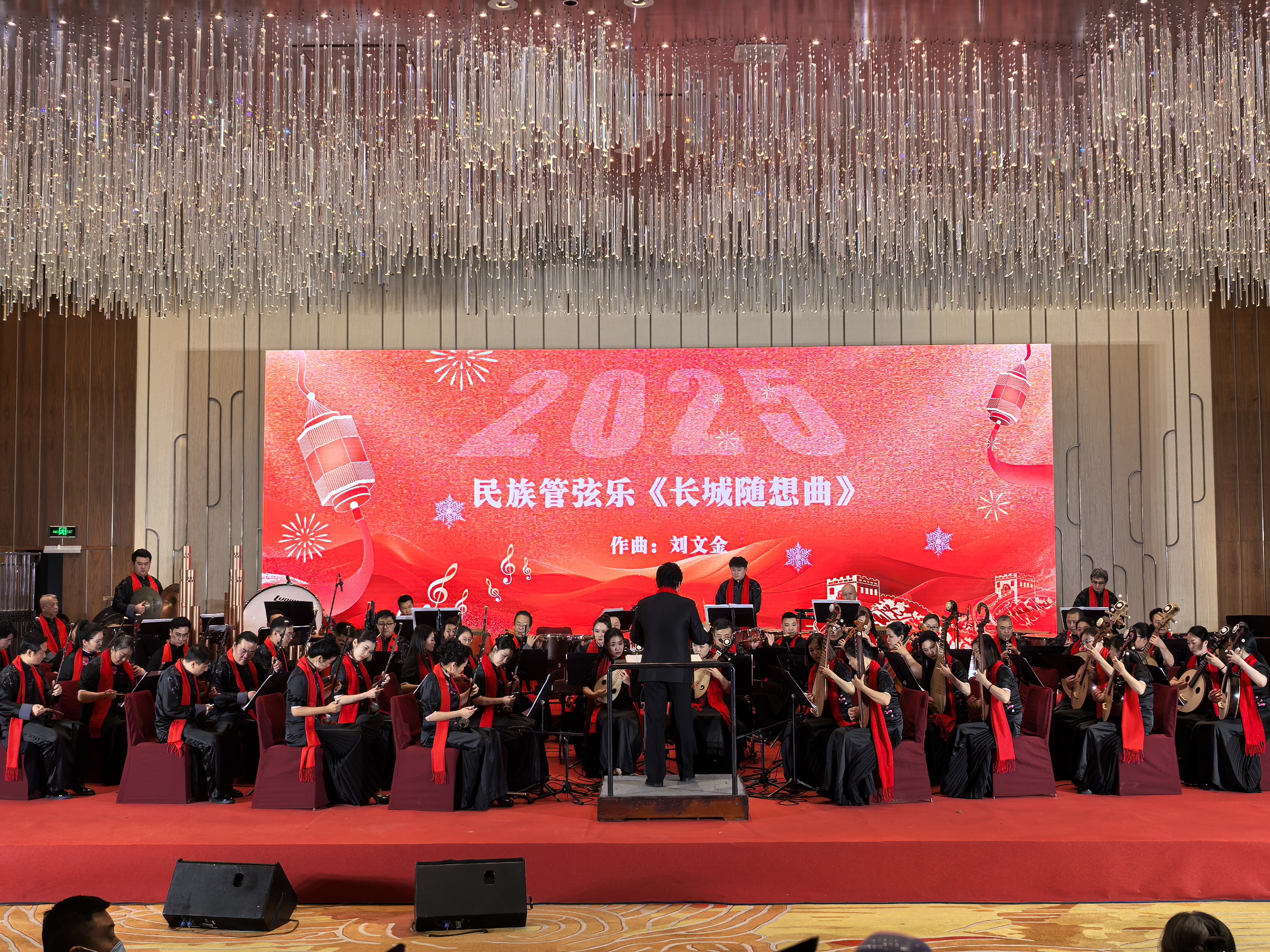 当晚,随着气势磅礴的《春节序曲》开场,音乐会正式拉开帷幕。紧接着,《金蛇狂舞》旋律激昂、节奏明快;《草原赞歌》以其辽阔的旋律展现了草原的壮美与自由;《大潮》展现了新时代的蓬勃朝气和发展活力;《百鸟朝凤》描绘出一幅百鸟争鸣、生机勃勃的自然画卷;《长城随想曲》展现了长城的雄伟气势与神韵。