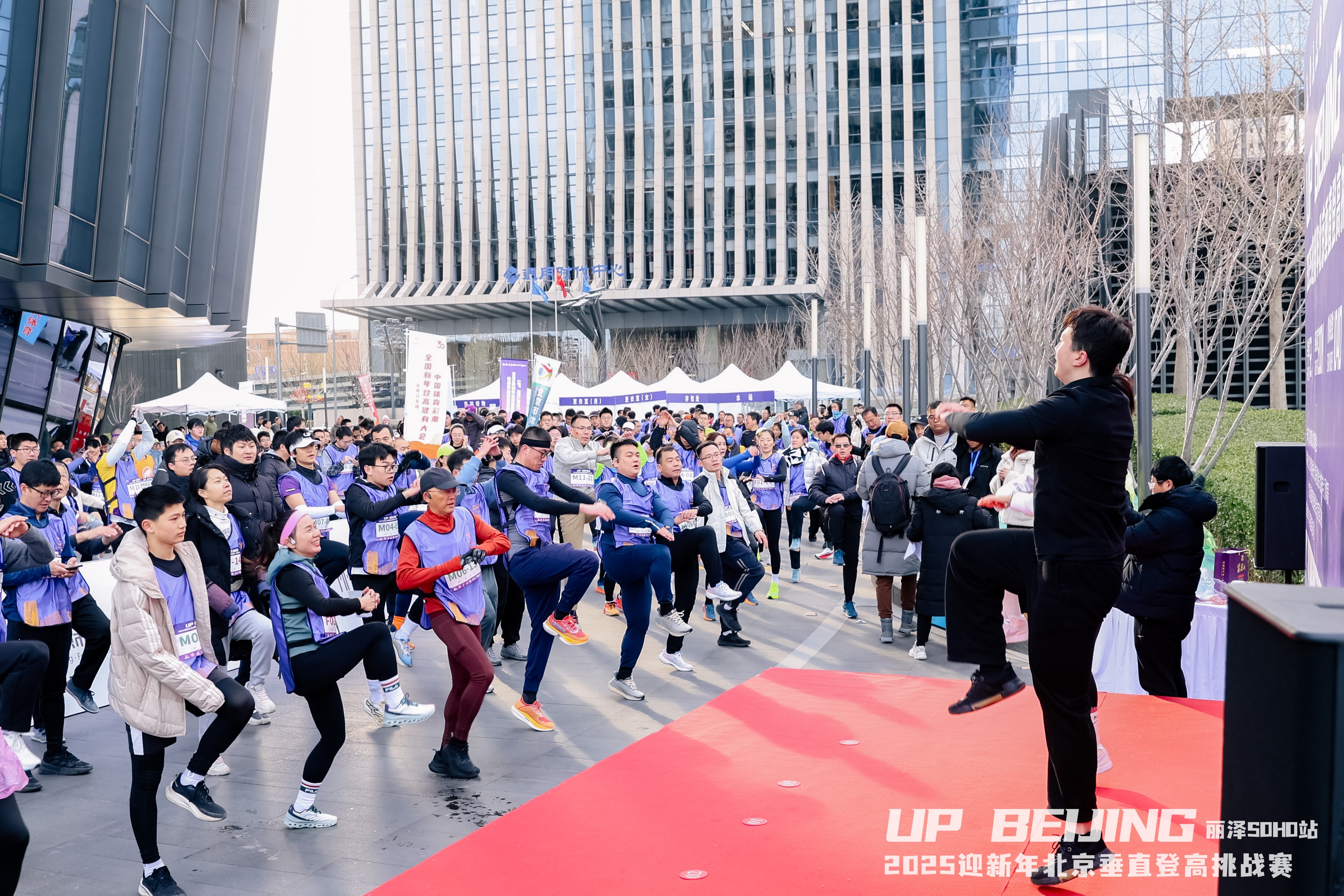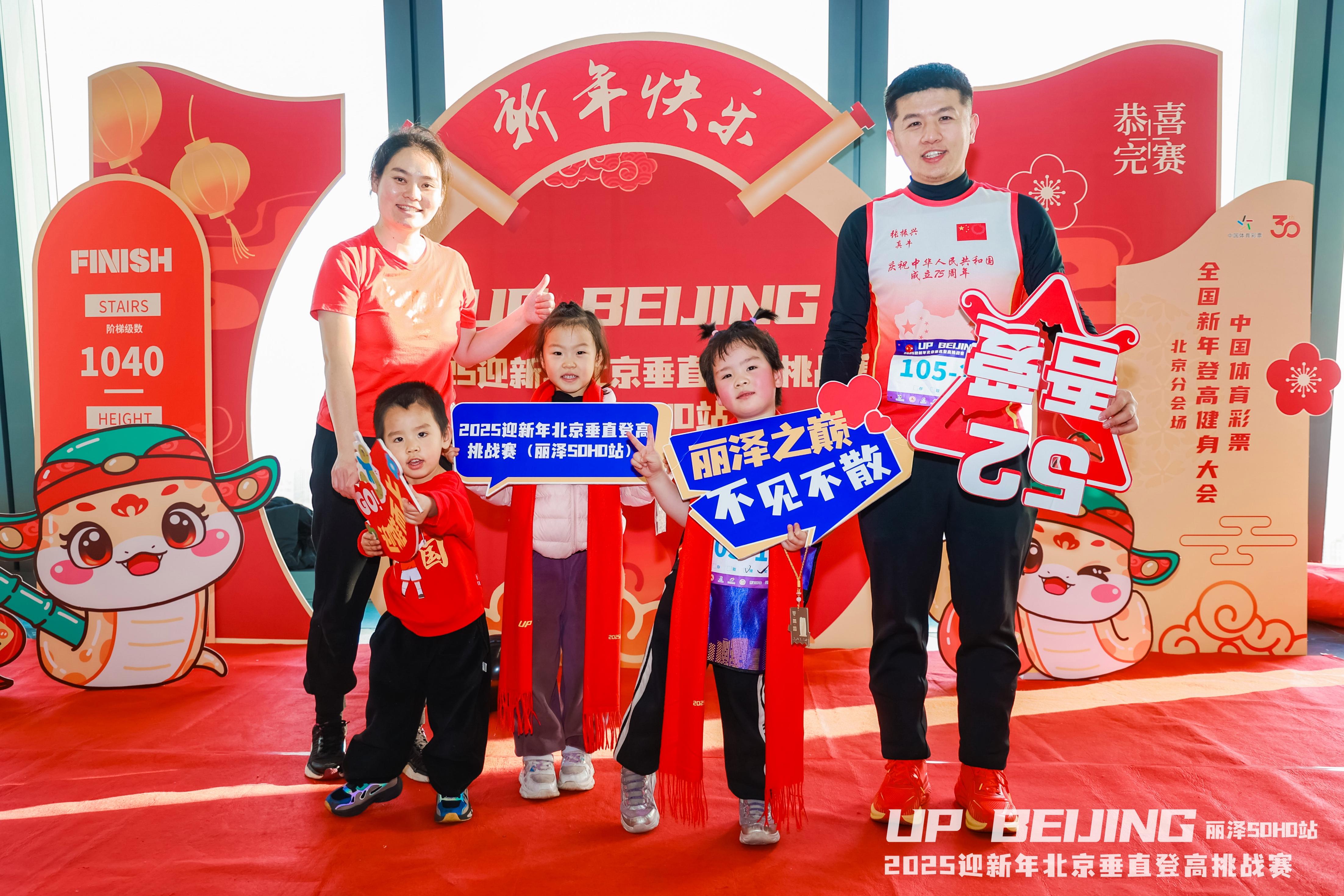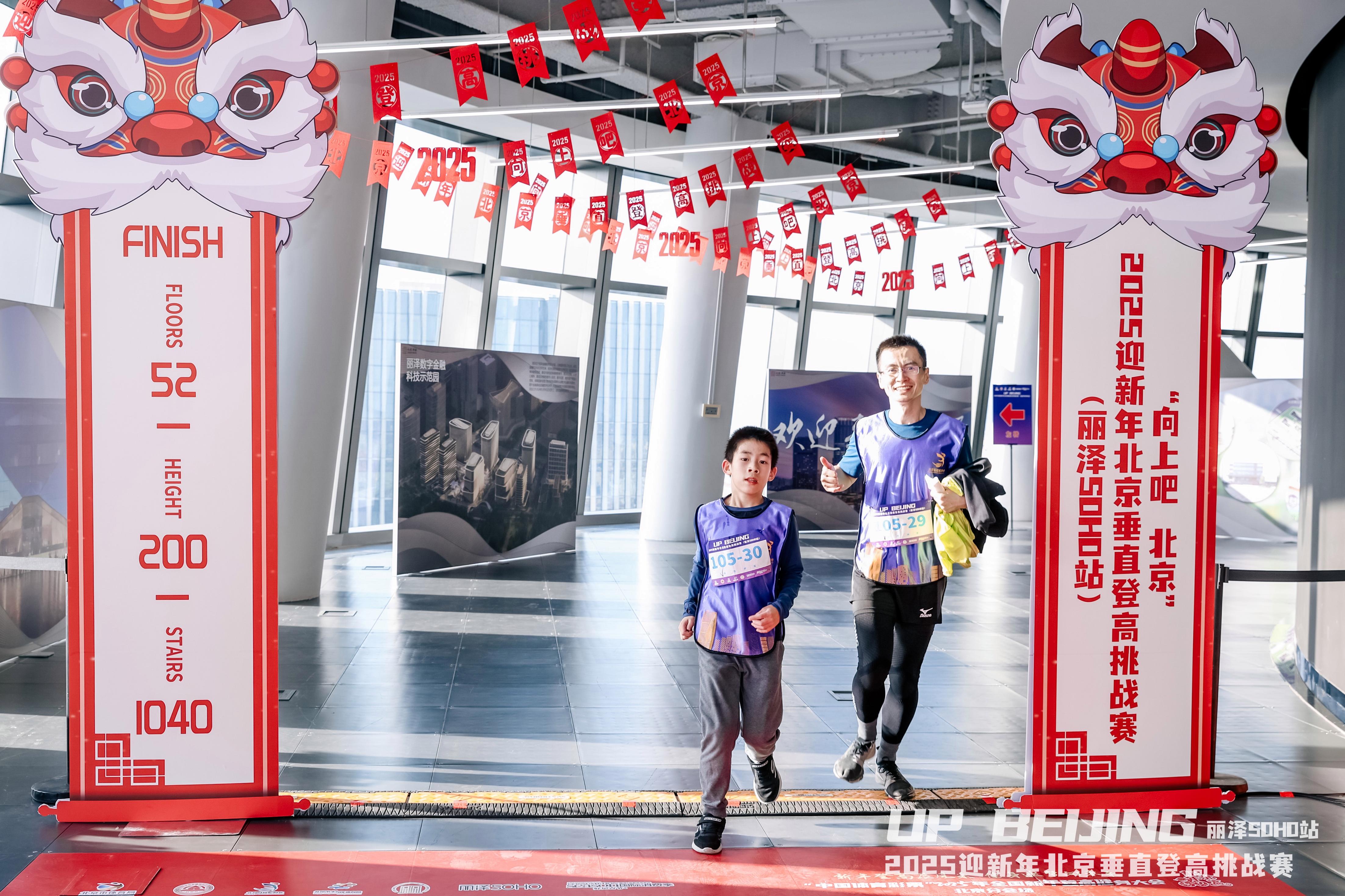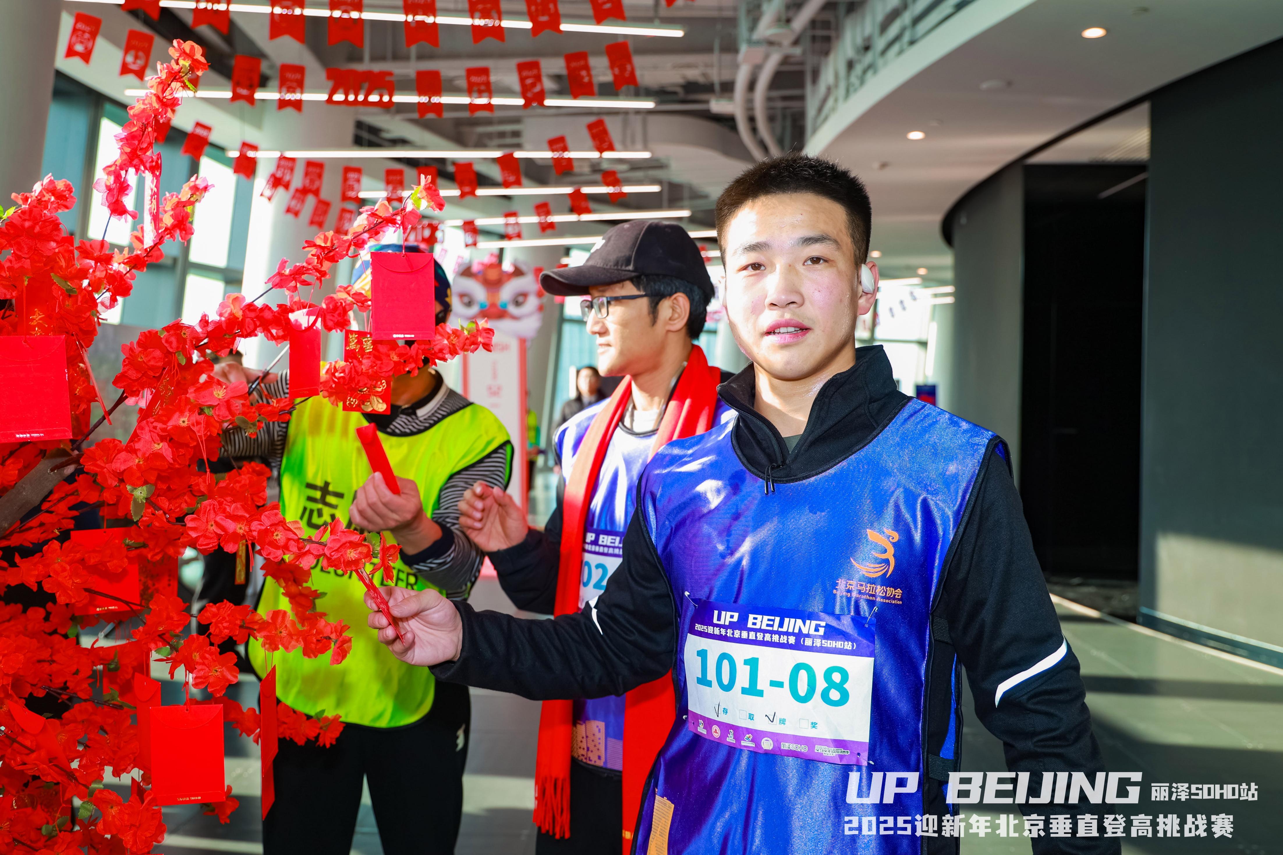随着一名名选手冲过东方彩饰的祥狮拱门,接过国风版的完赛挂牌;品尝着象征着团圆与美满的冰糖葫芦,将“福禄”甜在心里;捧着紫气东来的精致笔记本,将未来精彩书写…新年伊始,位于丰台区丽泽商务区有着“赛博朋克新地标”之称的丽泽SOHO层顶被红色的装饰海洋包围,处处洋溢着祥和温馨。2025北京迎新年垂直登高挑战赛丽泽SOHO站在此成功举办。