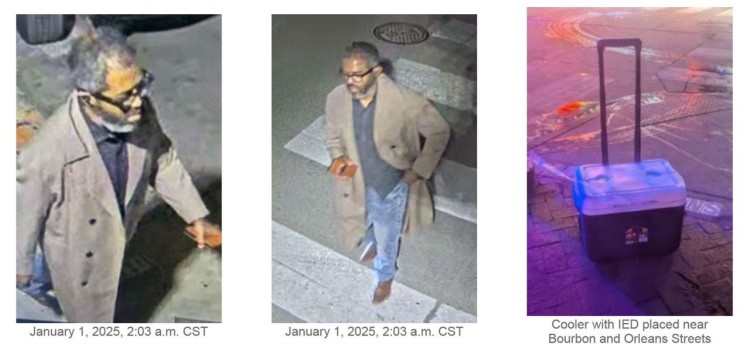“最新公布的监控照片显示,(嫌疑人)沙姆苏德丁·贾巴尔在波旁街致命袭击发生一个多小时前现身。”FBI当天在社交媒体X上发布的帖文中称,“FBI要求在街上与他擦肩而过或看到这个装有简易爆炸装置的蓝色冰柜的目击者与我们取得联系。”