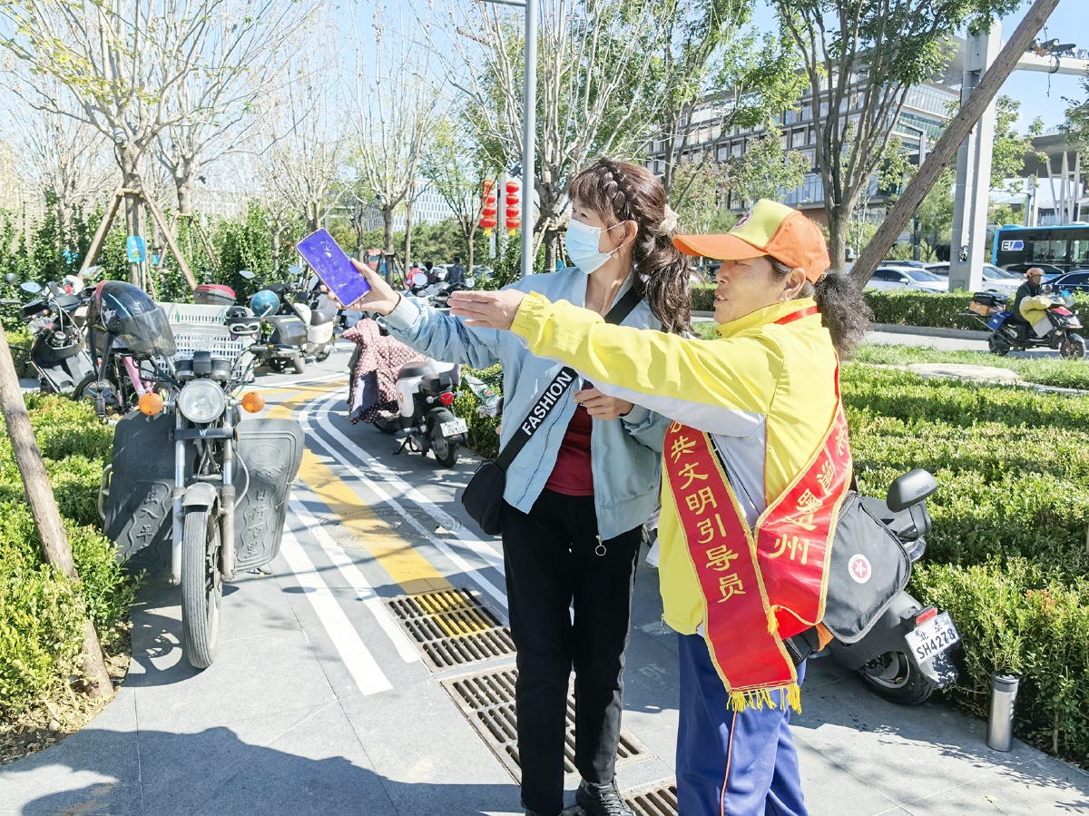 “现在是红灯,请您稍等。”“您带着孩子慢慢走,别着急!”上下班高峰时,骑电动车的上班族、赶时间送件的快递员,来往车辆川流不息,行人、机动车穿梭而行……早8点,正值出行早高峰,东夏园路口人来人往,车辆密集,市直机关的党员干部身穿志愿服务马甲、手持文明引导旗,在认领路口站岗值勤,用文明用语和标准手势劝阻劝导行人不走斑马线或者闯红灯、骑电动车不佩戴安全头盔等不文明行为。