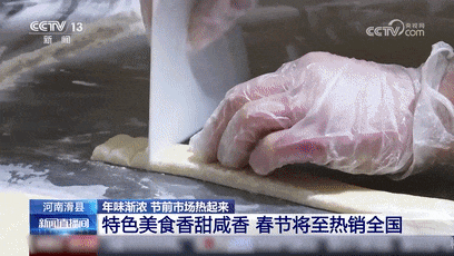 春节临近,河南的一家糕点店内,面点师傅正在加紧赶制蜜三刀,他们将经过揉、擀、切等多道工序的面团做成独特的形状,油炸至金黄后,再将其表面裹上一层晶莹剔透的蜜糖,受到不少消费者的喜爱。