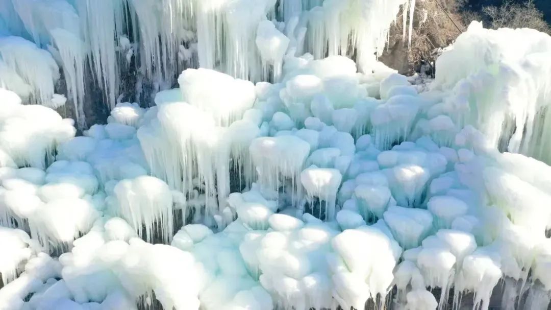云瀑沟位于旧县镇三里庄村,因沟内溪水、瀑布众多而得名。冰瀑依山势而生,形态万千,是不加修饰的自然艺术品。今冬,云瀑沟风景区迎来首波冰瀑,自崖顶蜿蜒垂落,阳光下璀璨夺目,尽显北国冬韵。