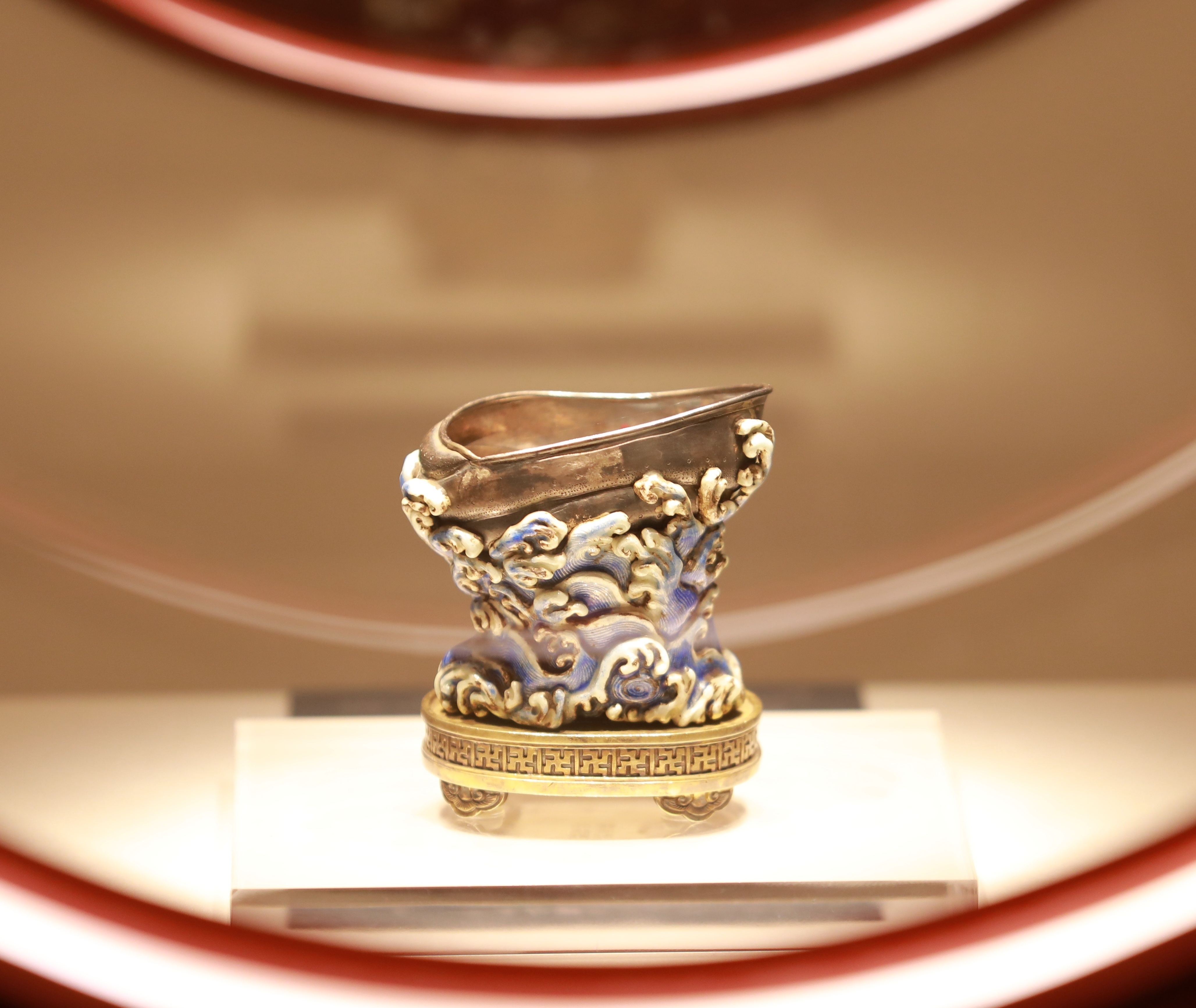 海螺为银制,浪花为银烧蓝工艺