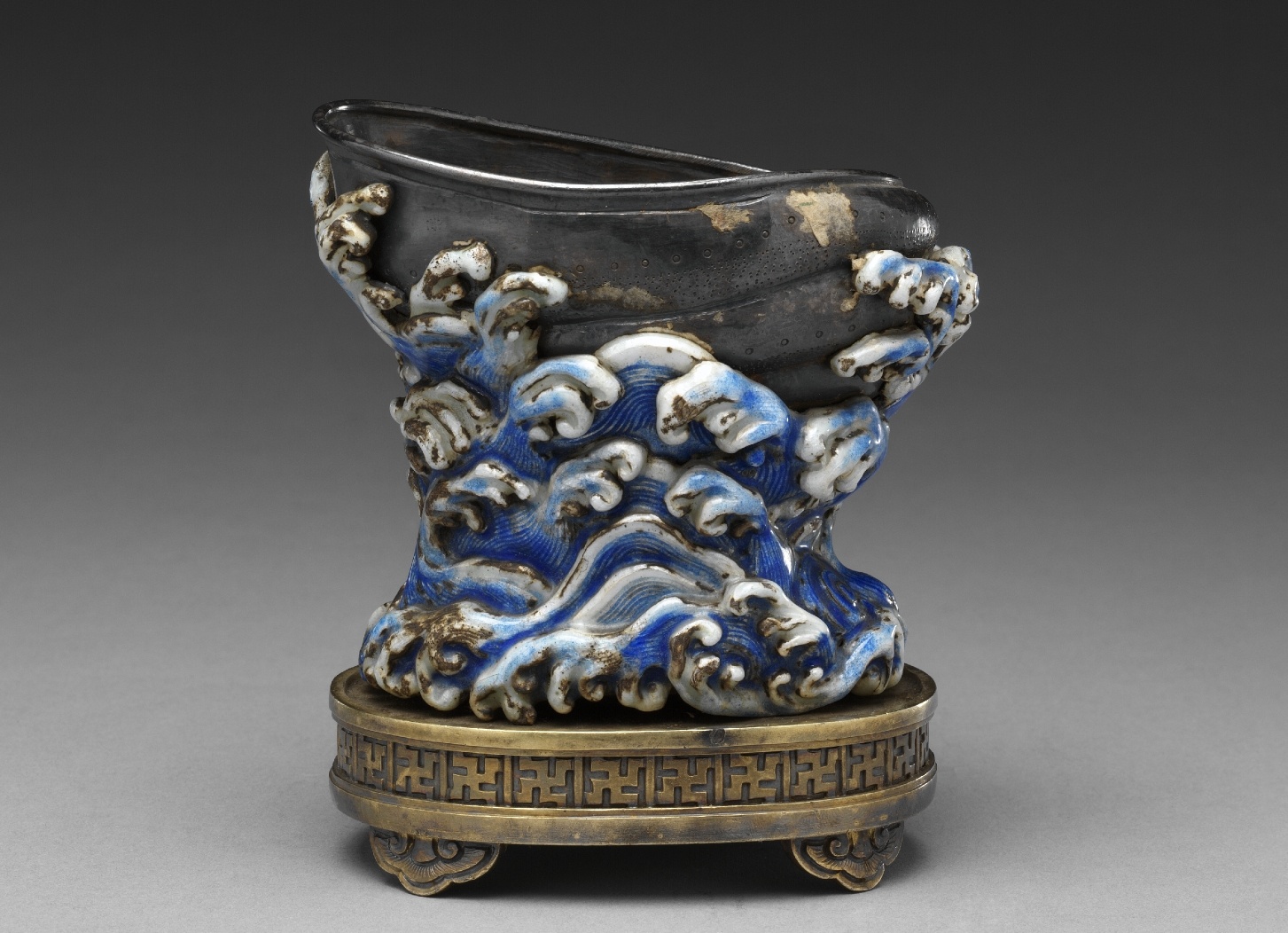 精美的铜座上