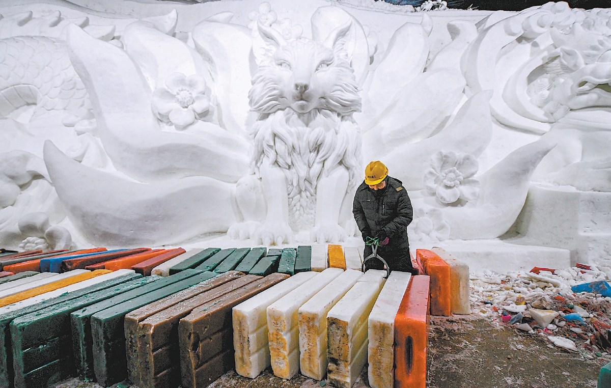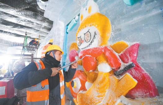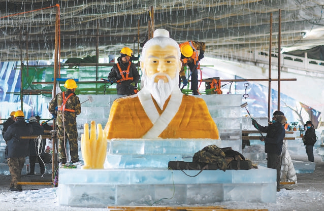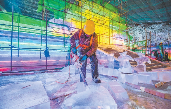 冰灯艺术区占地面积8000平方米,时尚、潮酷、动漫是今年的关键词。艺术区共分为蛇年贺新春区、泡泡玛特区、西游文化区、仙侠文化区、冰川飞瀑区。蛇年贺新春区以生肖“蛇”为主题,包括可爱的灵蛇、自创IP“潮玩五行龙小侠”和白蛇西湖、女娲造福娃、伏羲八卦等场景;泡泡玛特主题展区以迷宫为载体,将打造8组成规模的主题场景、互动冰滑梯,并有一组大型主题雪雕、一组大型主题冰浮雕打卡墙;西游文化主题展区以西游文化为题材,用冰雕冰灯呈现南天门、大型冰悟空、天命塔龙鲲悬空寺等主题场景;仙侠展区以游戏为题材,以蜀山浮空城、仙剑城、水月宫等仙侠建筑形象和神仙姐姐小灵儿等人物形象为主,将游客带入“仙侠世界”;冰川飞瀑展区将在延续往届冰川飞瀑视觉冲击感的基础上,设置气膜灯及精品雪雕作品。