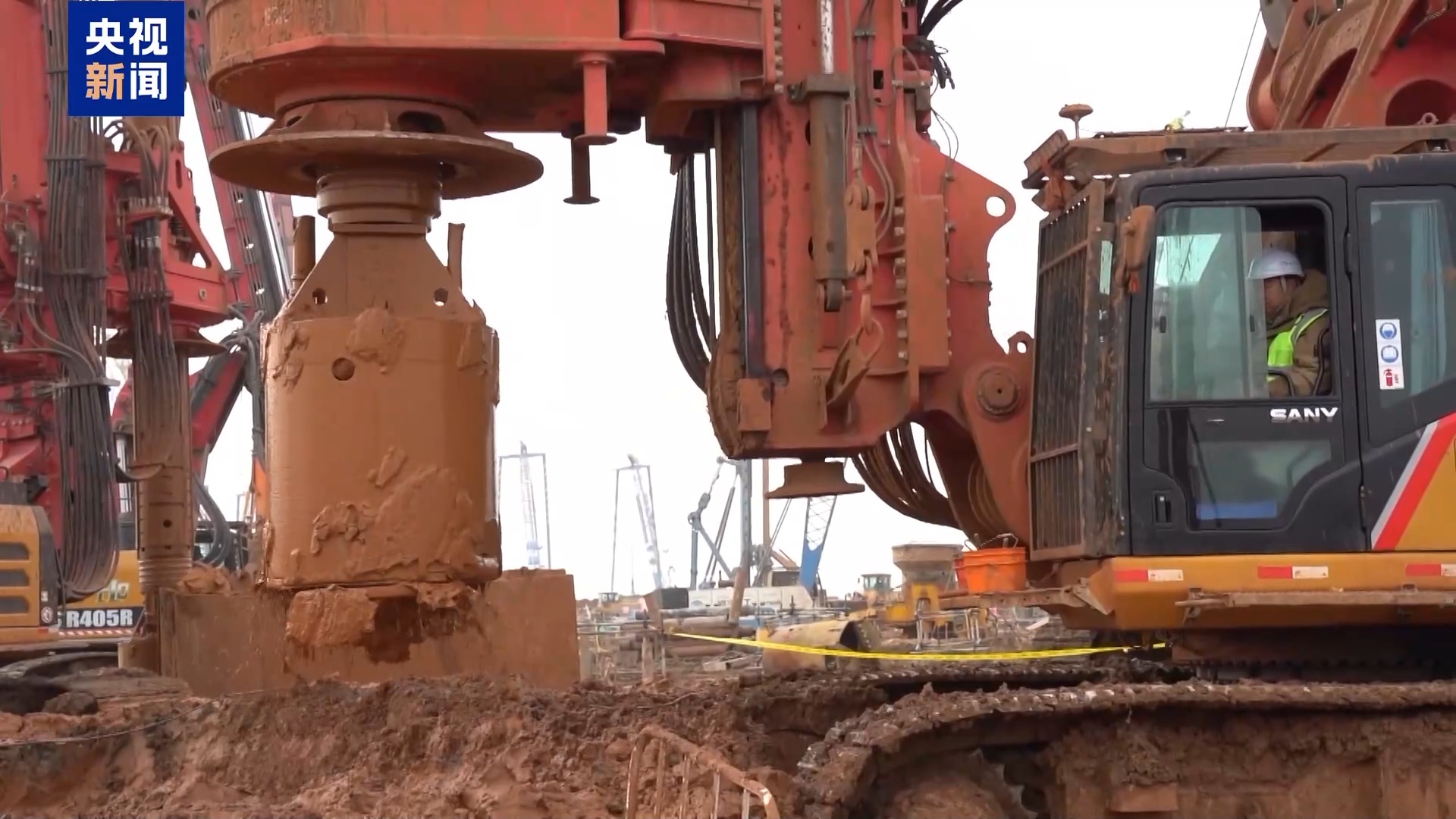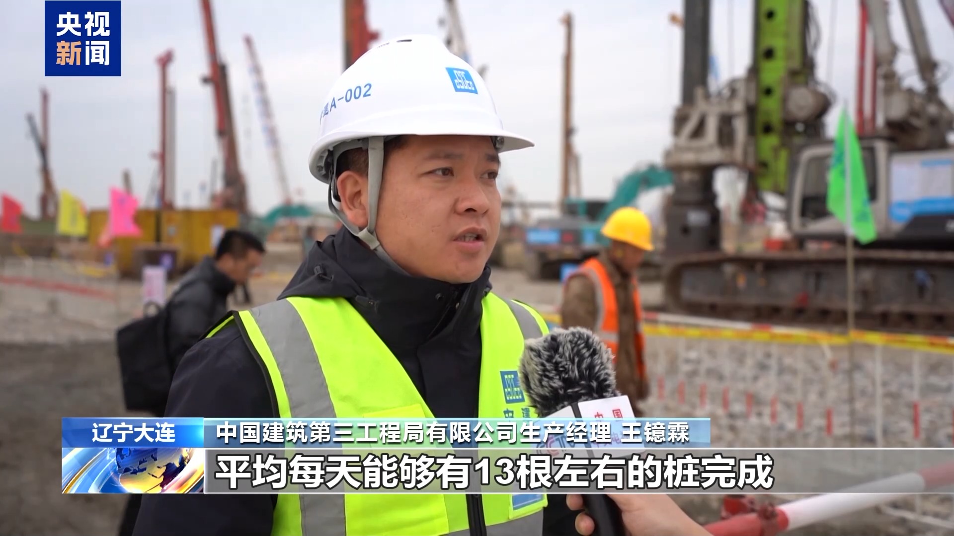 中国建筑第三工程局有限公司生产经理 王镱霖:现场有将近40台桩基设备在同时施工,平均每天能有13根左右的桩完成。截止到明年3月底4月初,整个航站楼区域的桩基础将全部施工完成。