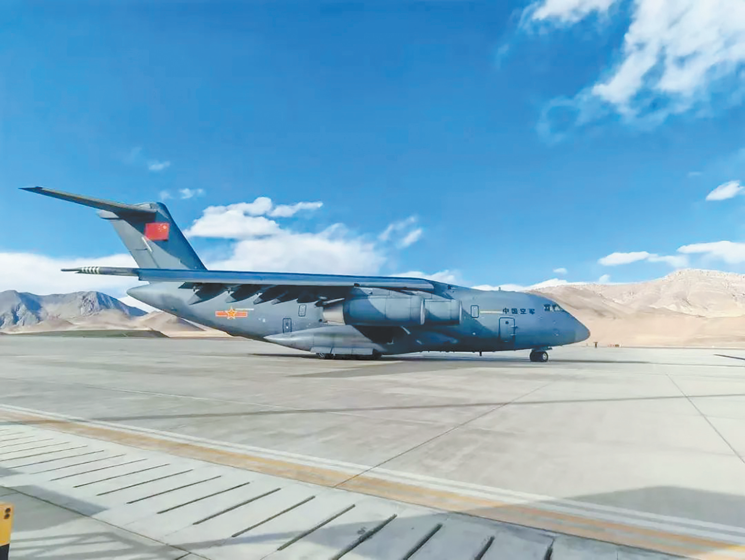 1月7日16时许,西部战区空军运-20飞机运载战区前进指挥所抵达震区定日县,统筹指挥抗震救灾工作。