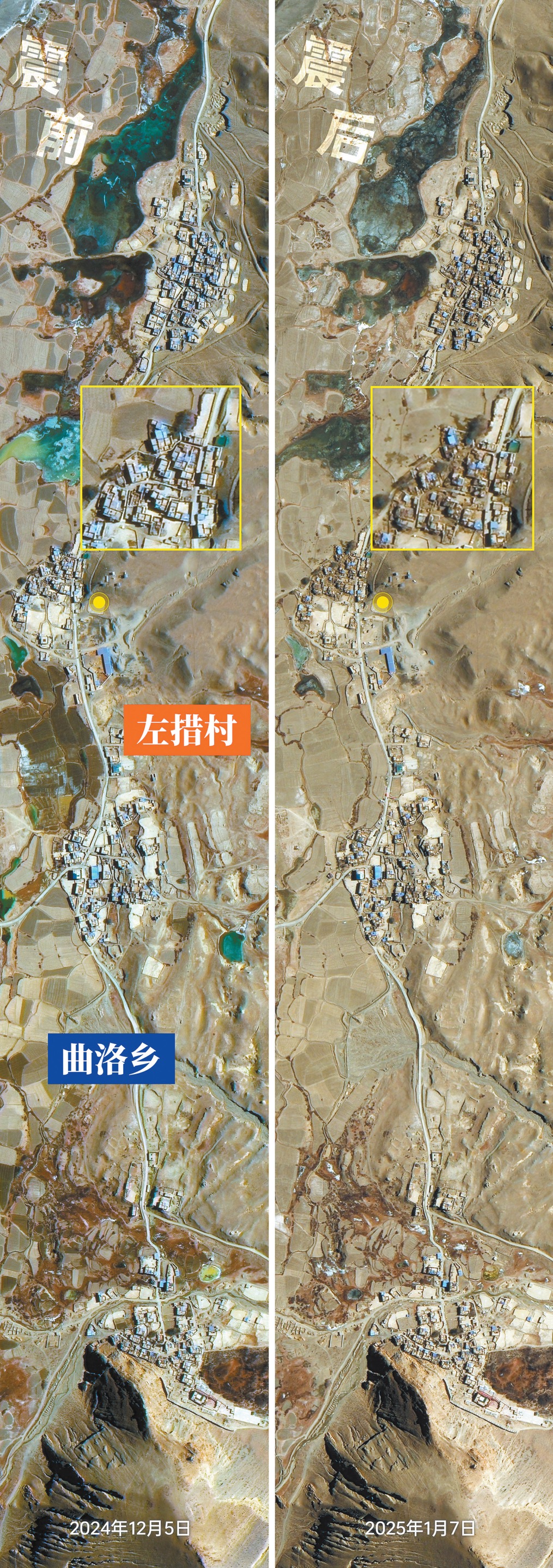 《环球时报》记者1月8日从长光卫星获悉,为掌握受灾区域实时情况,长光卫星在震后紧急调度“吉林一号”卫星过境西藏定日县,对灾区进行观测;并在成像后第一时间提供给相关单位,助力地震救灾工作。定日县措果乡是1月7日6.8级地震的震中所在地。根据吉林一号卫星1月7日拍摄到的高分辨率图像可以看到,措果乡的房屋多为土坯房,地震中倒塌严重。此外,卫星图像还显示,受灾较为严重的长所乡房屋多为土木结构,抗震性能较差,在地震中倒塌严重。定日县曲洛乡房屋多为土木结构,在地震中倒塌严重。乡政府积极搭建临时帐篷,为受灾群众提供临时住所。