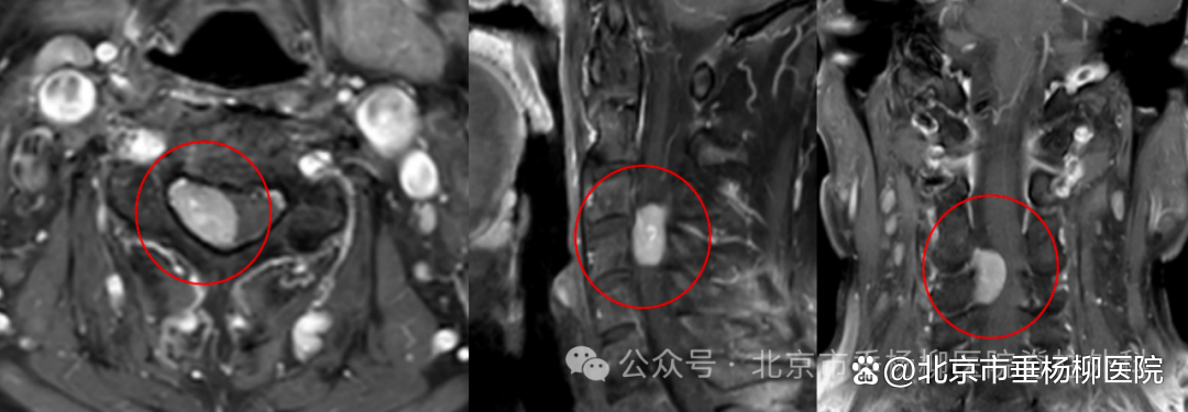 患者刘先生今年57岁,近期因“肢体感觉异常2月,加重伴双手麻木半月”,前来北京市垂杨柳医院脊柱外科(骨四科)就诊。医生在接诊后,经查体发现患者身体表现出的一些异常:双手五指及手掌远端掌横纹以外皮肤感觉减退;左下肢大腿外侧皮肤感觉减退;左侧背部、左足背部感觉异常(灼烧感);双侧Hoffman征(+)。于是建议患者完善颈椎增强核磁。果不其然发现了大问题。