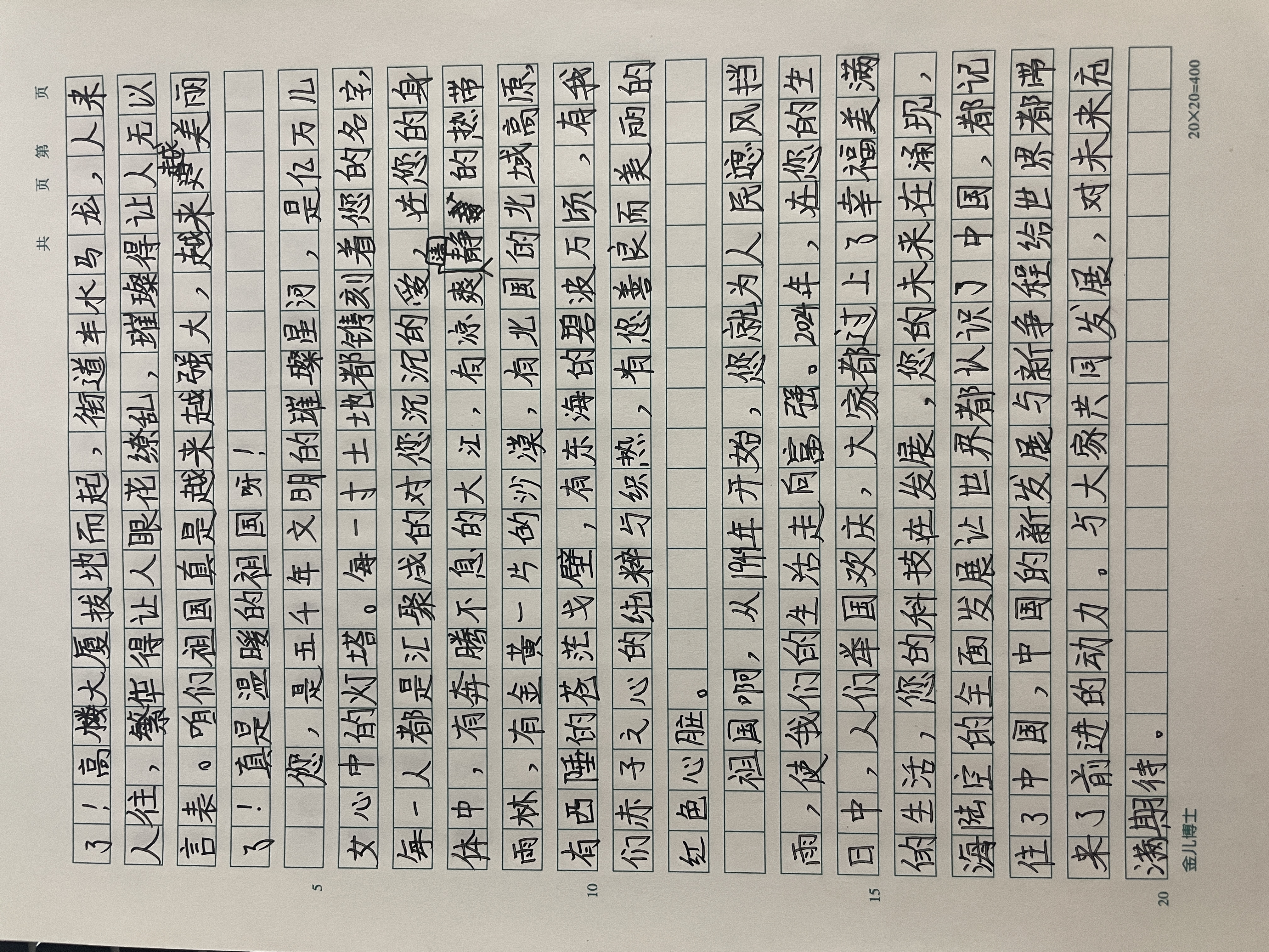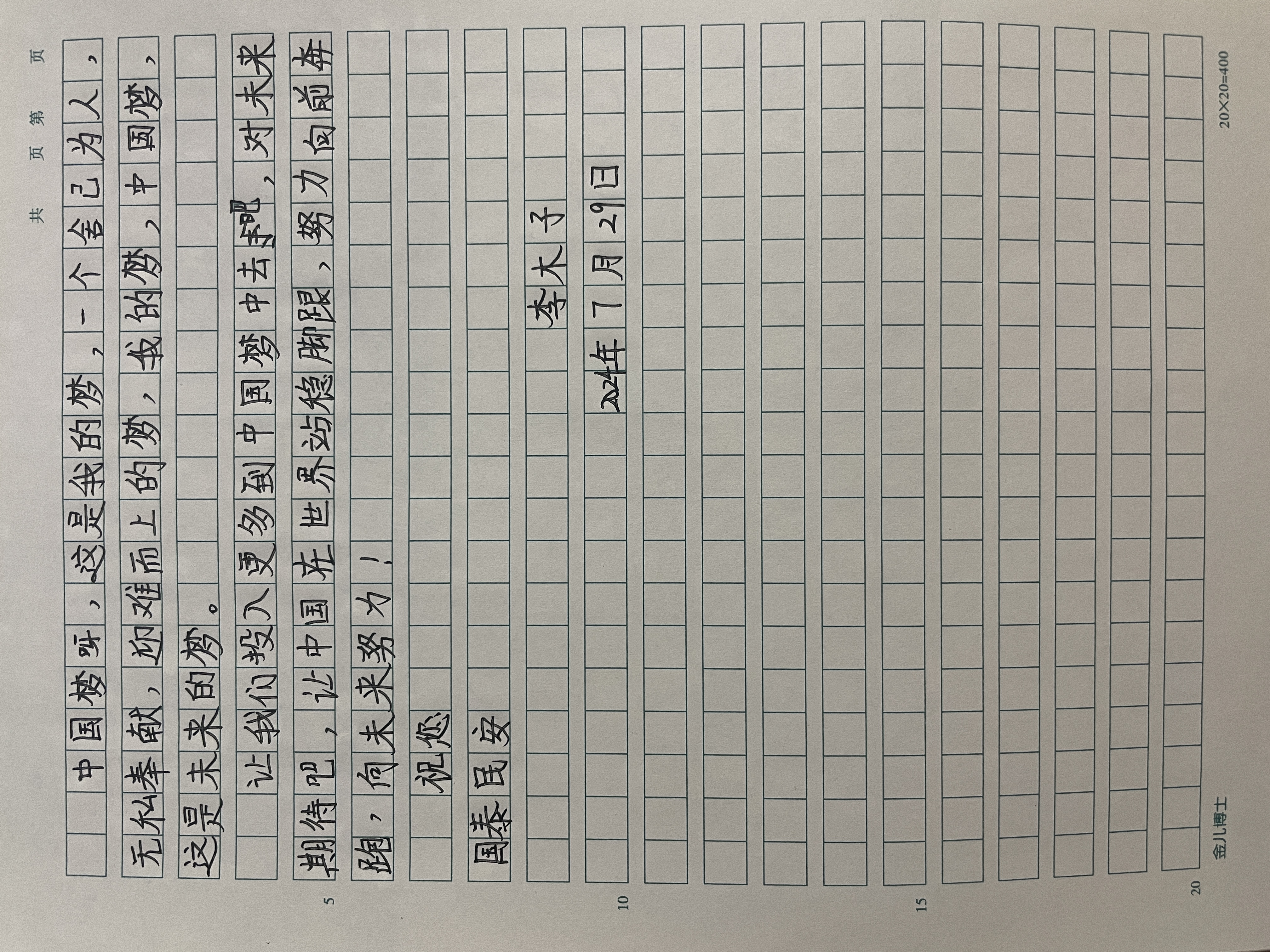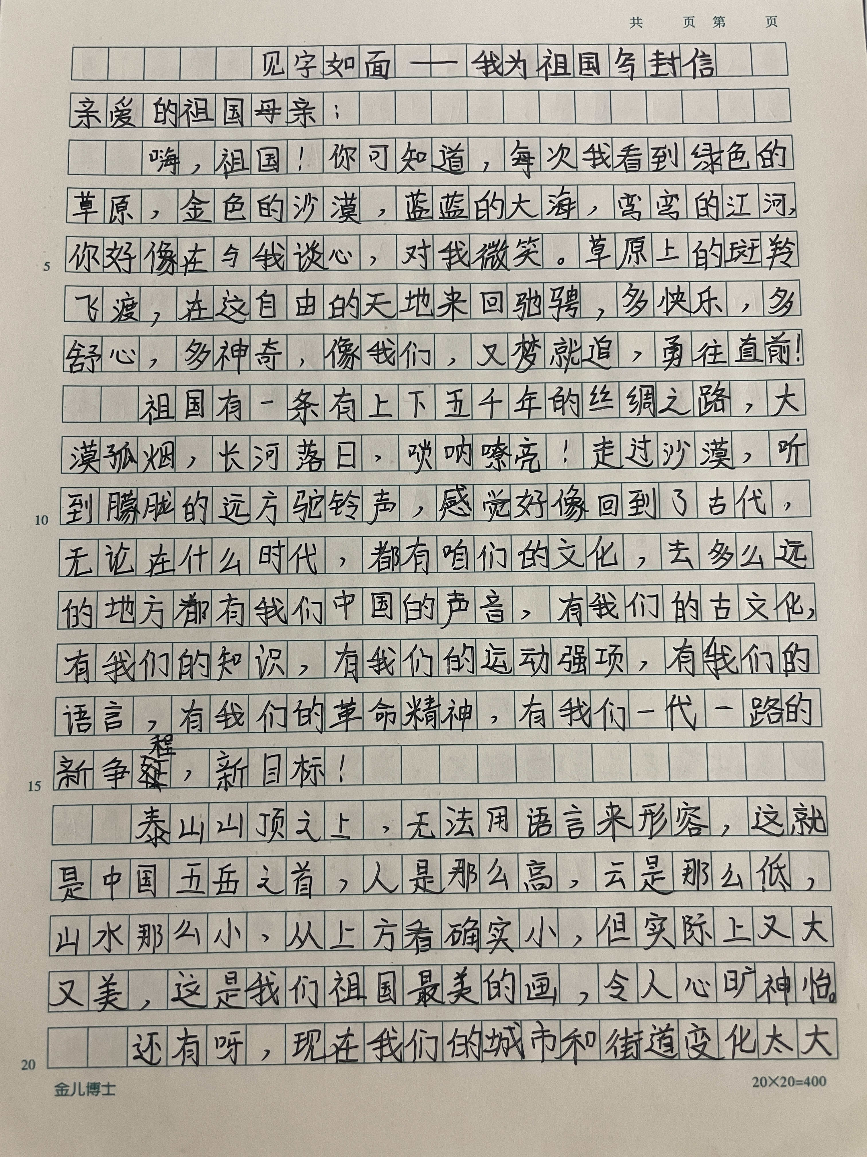 今天这幅AI绘画作品的原型来自北京航空航天大学附属小学(昌平学校)四年级(4)班李木子的书信作品《我给祖国写封信》。