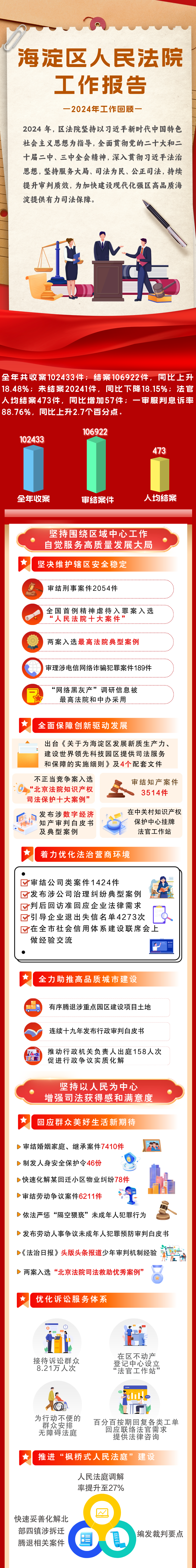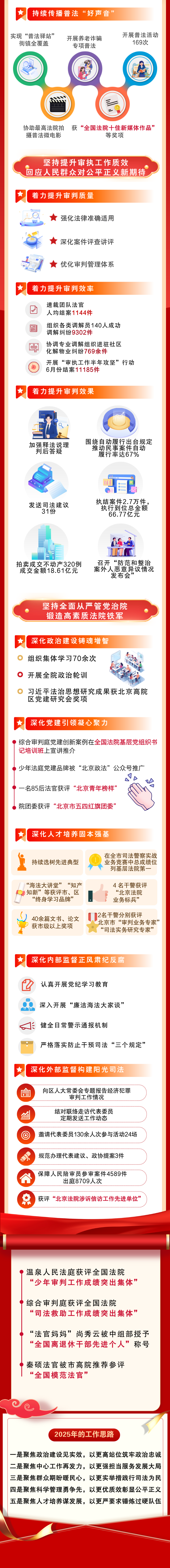 会议听取了海淀法院党组书记、代院长亓纪所作的《海淀区人民法院工作报告》。报告全面回顾了2024年主要工作完成情况,并对2025年的主要工作思路进行说明。