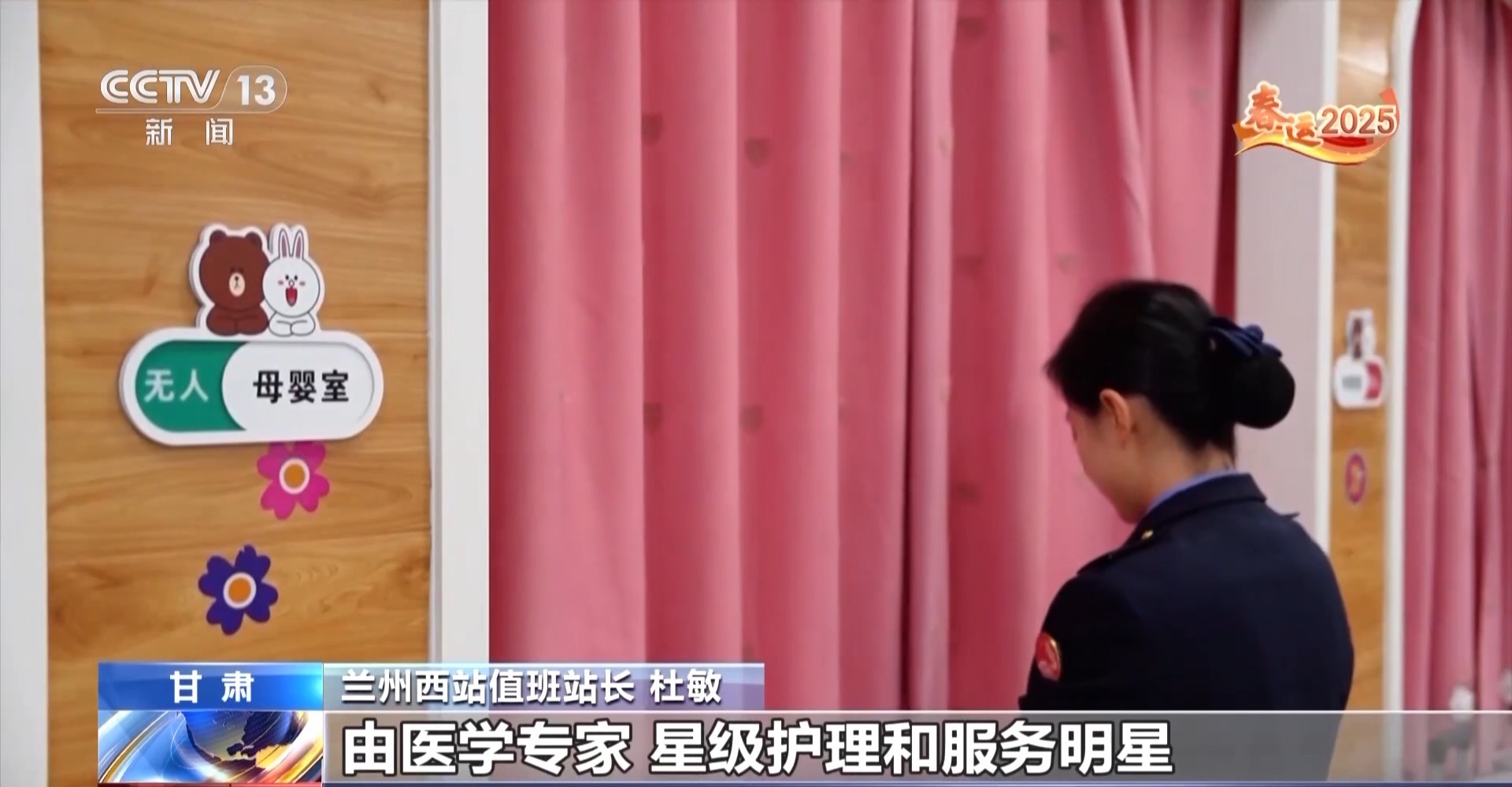 兰州西站值班站长 杜敏:今年春运,兰州车站和甘肃省妇幼保健院携手建立了“馨路妈妈服务岗”,由医学专家、星级护理和服务明星在母婴候车专区,免费提供儿童临时看护、辅助育儿哺乳、突发疾病帮扶救助等服务。