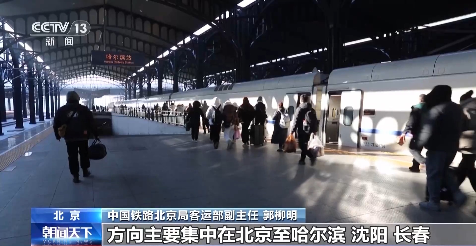 中国铁路北京局客运部副主任 郭柳明:旅客出行高峰期将增开旅客列车220对,方向主要集中在北京至哈尔滨、沈阳、长春、太原、大同、呼和浩特、青岛以及石家庄、保定、张家口等地。根据客票预售情况,将梯次补充运力。