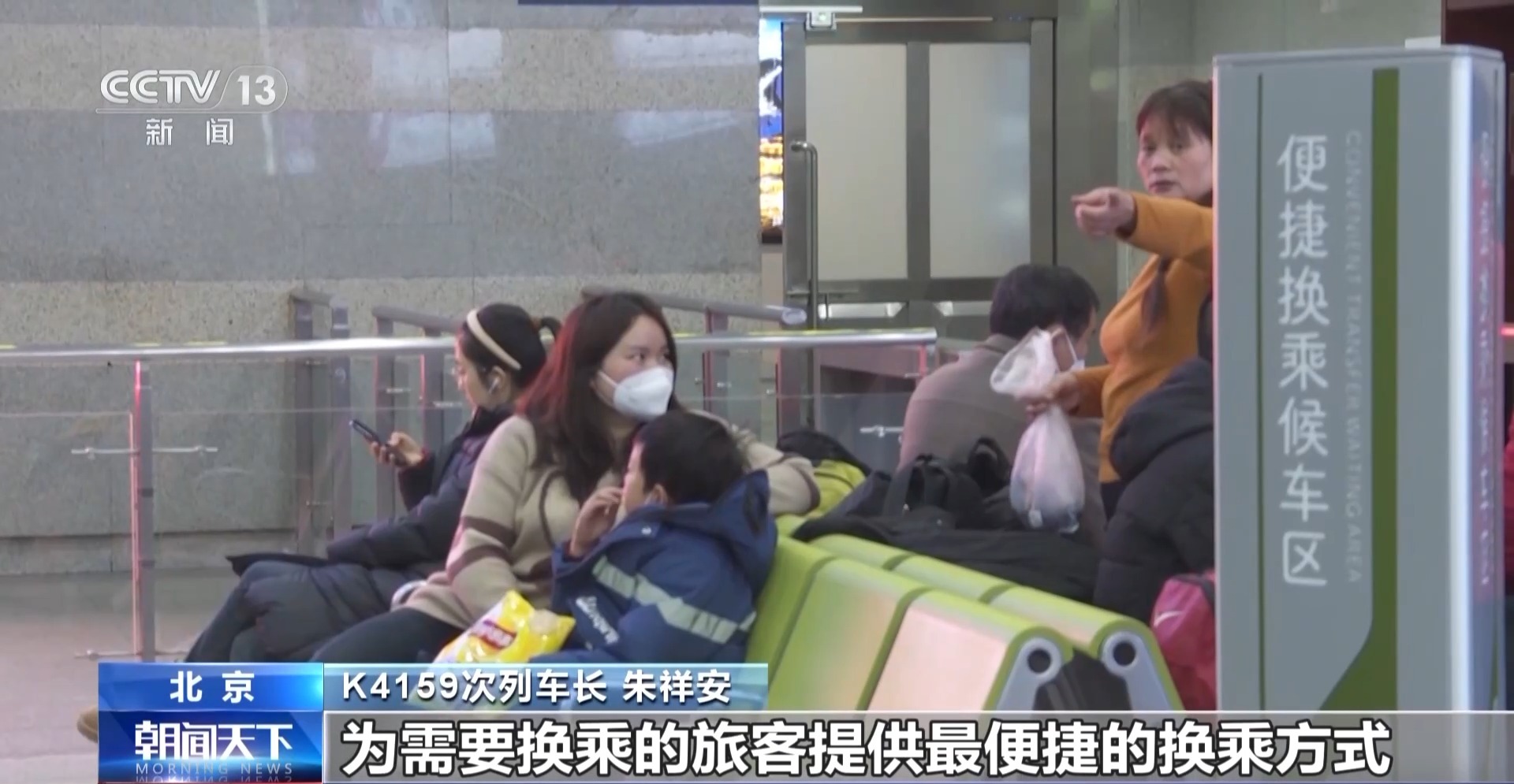 K4159次列车长 朱祥安:列车针对衡水、聊城、曹县、阜阳等中间站,为需要换乘的旅客提供最便捷的换乘方式,减少旅客换乘时间。同时专门增设了志愿者服务岗,为老、弱、病、残、孕等重点旅客提供特别照顾。