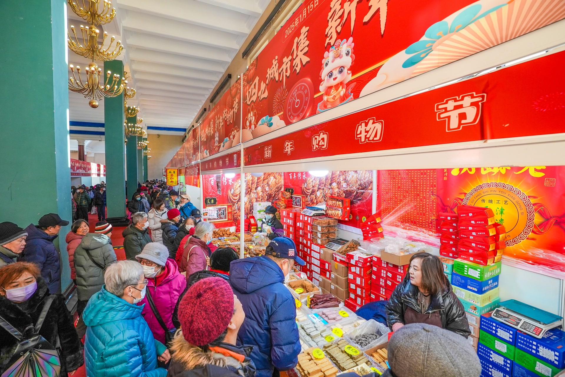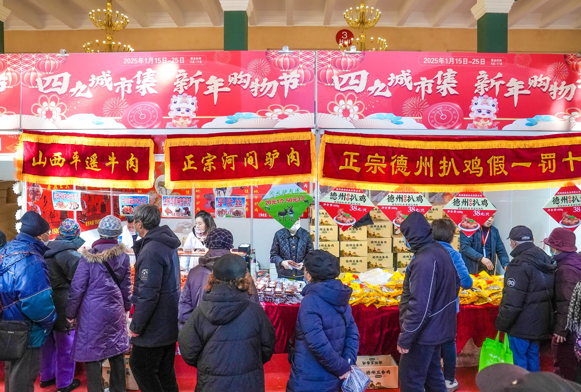 本次新年购物节由四九城市集组委会打造。主办方相关工作人员介绍,在2025年春节即将来临之际,此次活动的举办是北京展览馆迎新春、促消费的系列举措之一,开集时间为15日至25日,共计11天,充分满足市民春节前购置年货的需求。工商银行北京市分行还在现场推出优惠活动,消费者可在活动点位领取限额消费立减金,在指定商户消费可享随机限额立减优惠。