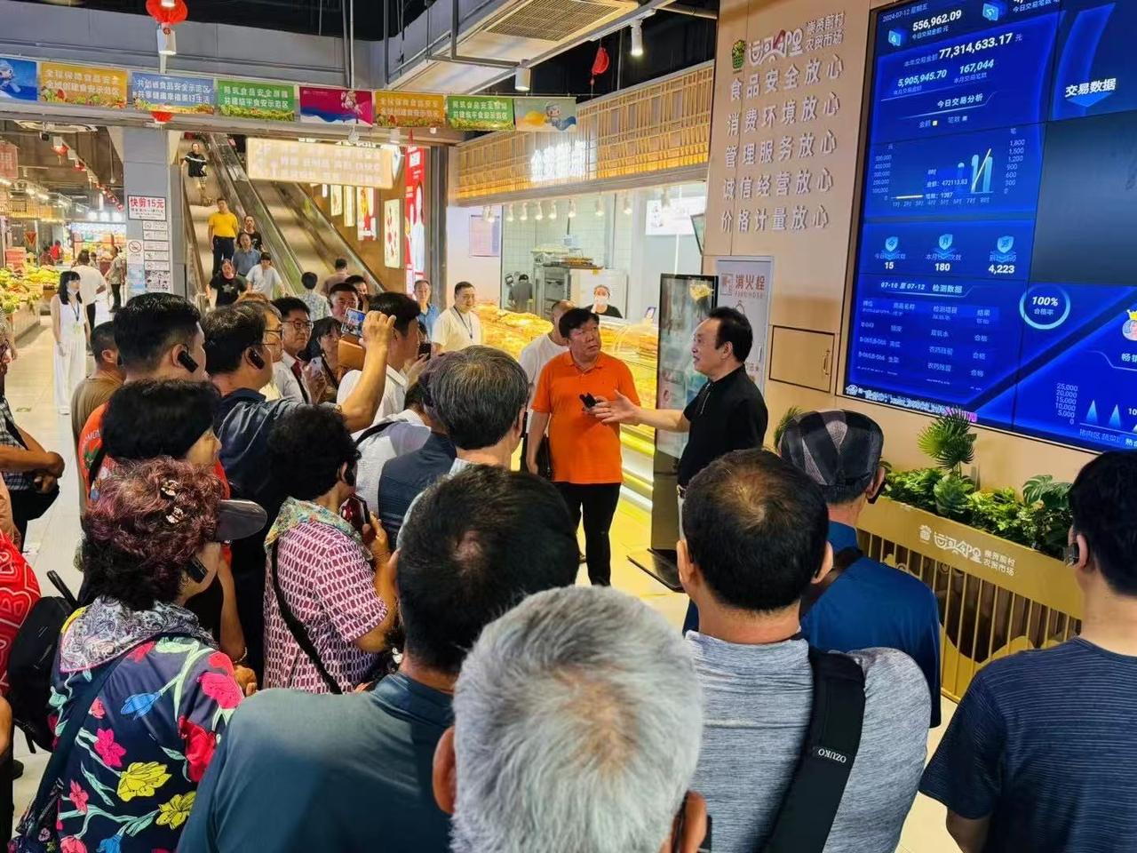 来自韩国的旅游团打卡杭州农贸市场,感受菜市场里的烟火气。受访者供图。