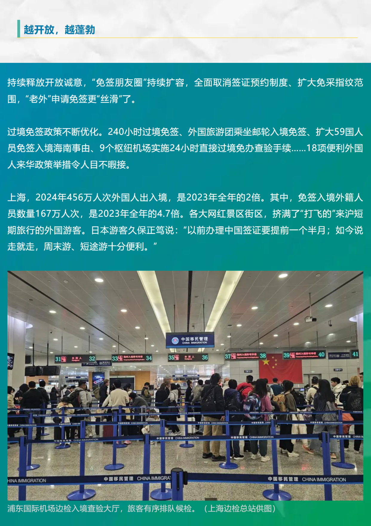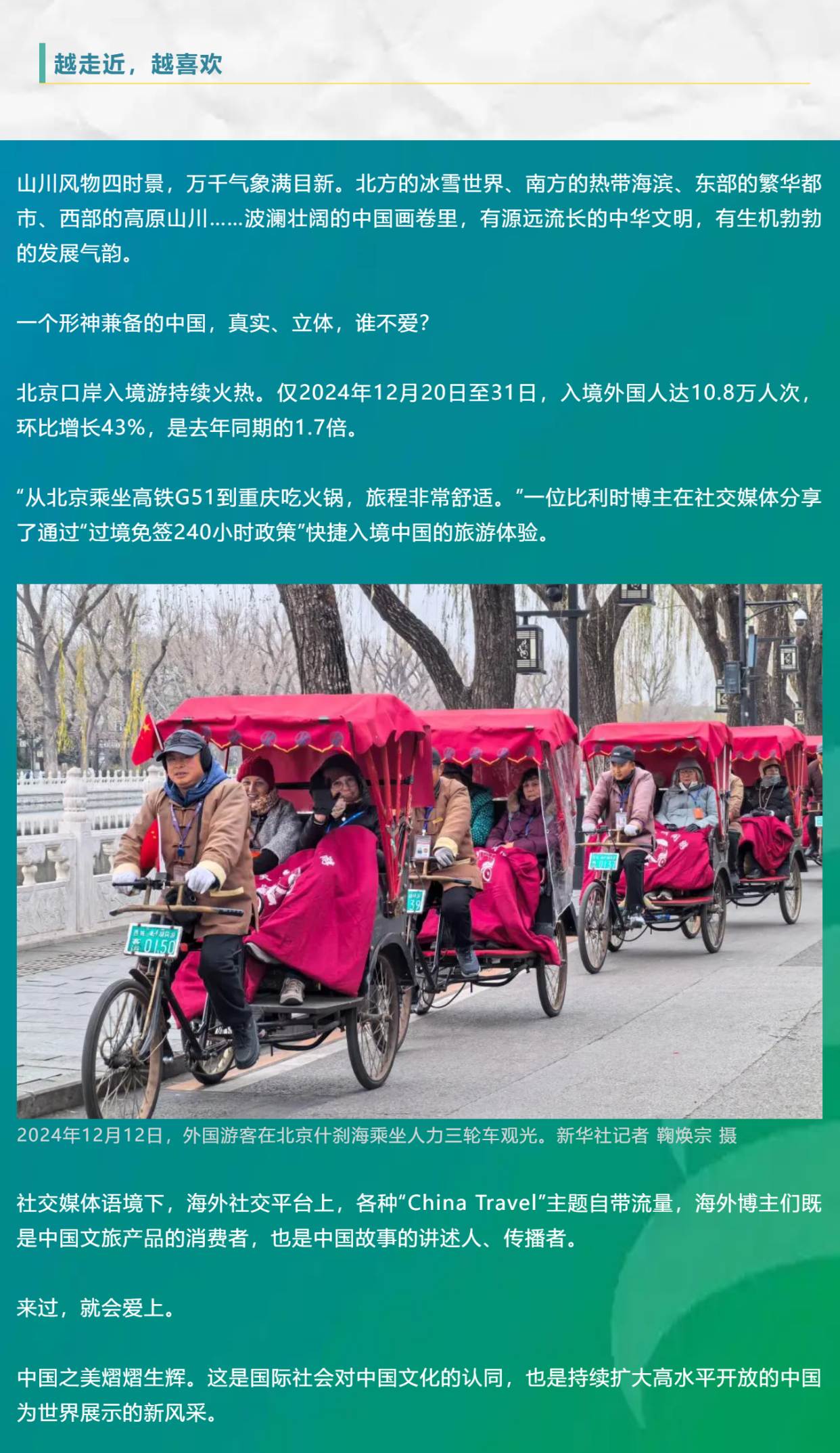 14日,国家移民管理局发布最新数据:2024年,6.1亿人次出入境,同比上升43.9%;全国各口岸免签入境外国人2011.5万人次,同比上升112.3%。数据实证“China Travel”潜力无限。