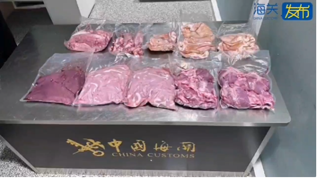 根据《中华人民共和国禁止携带、寄递进境的动植物及其产品和其他检疫物名录》规定,(生或熟)肉类(含脏器类)及其制品禁止携带、寄递进境。目前,已对上述动物内脏作截留销毁处置。