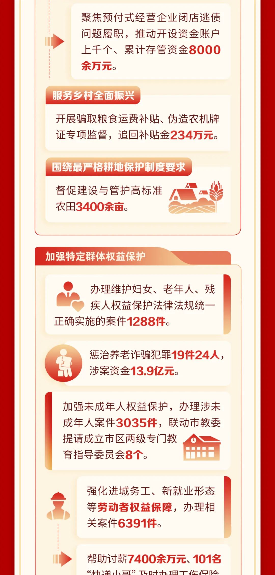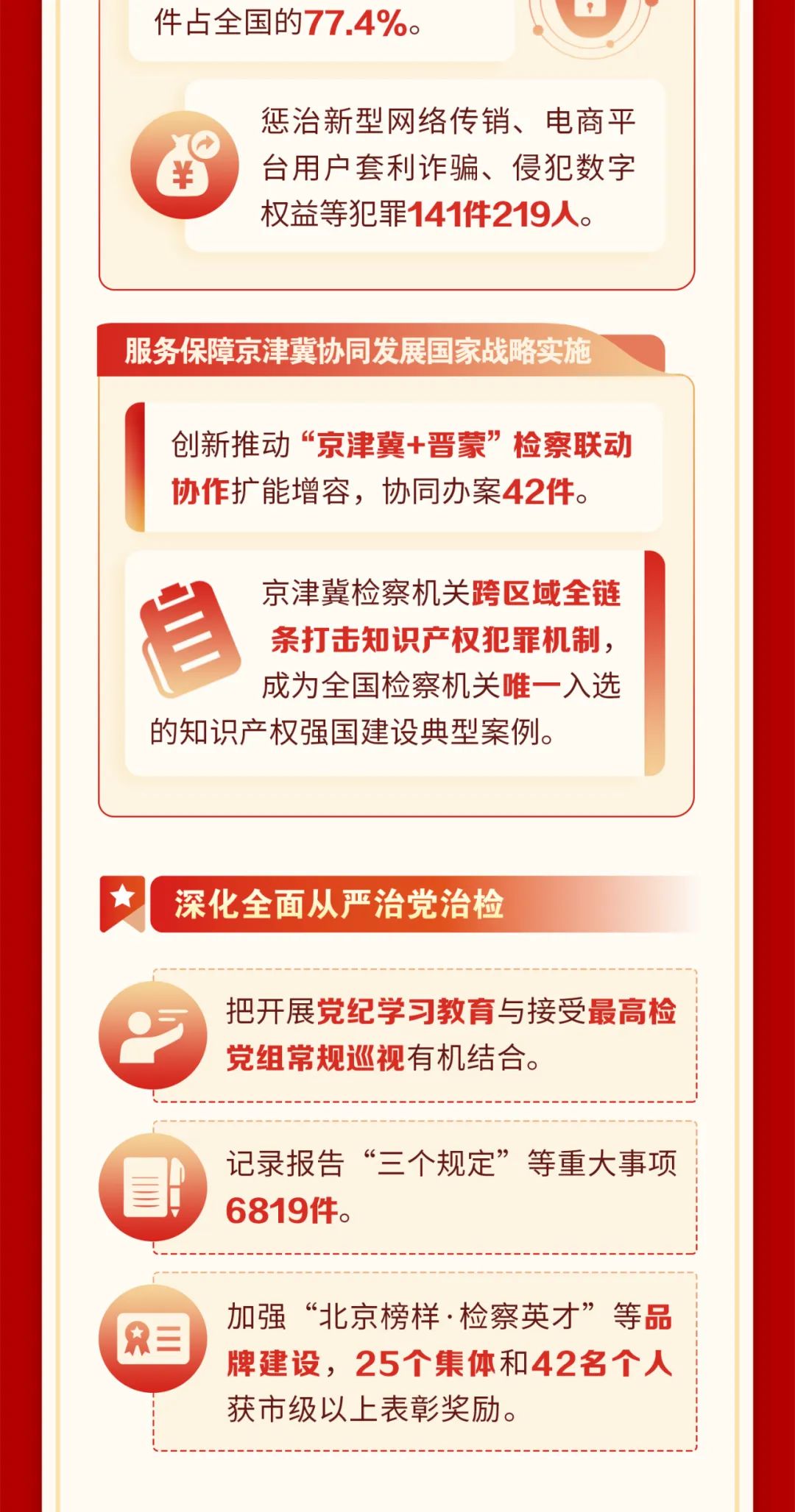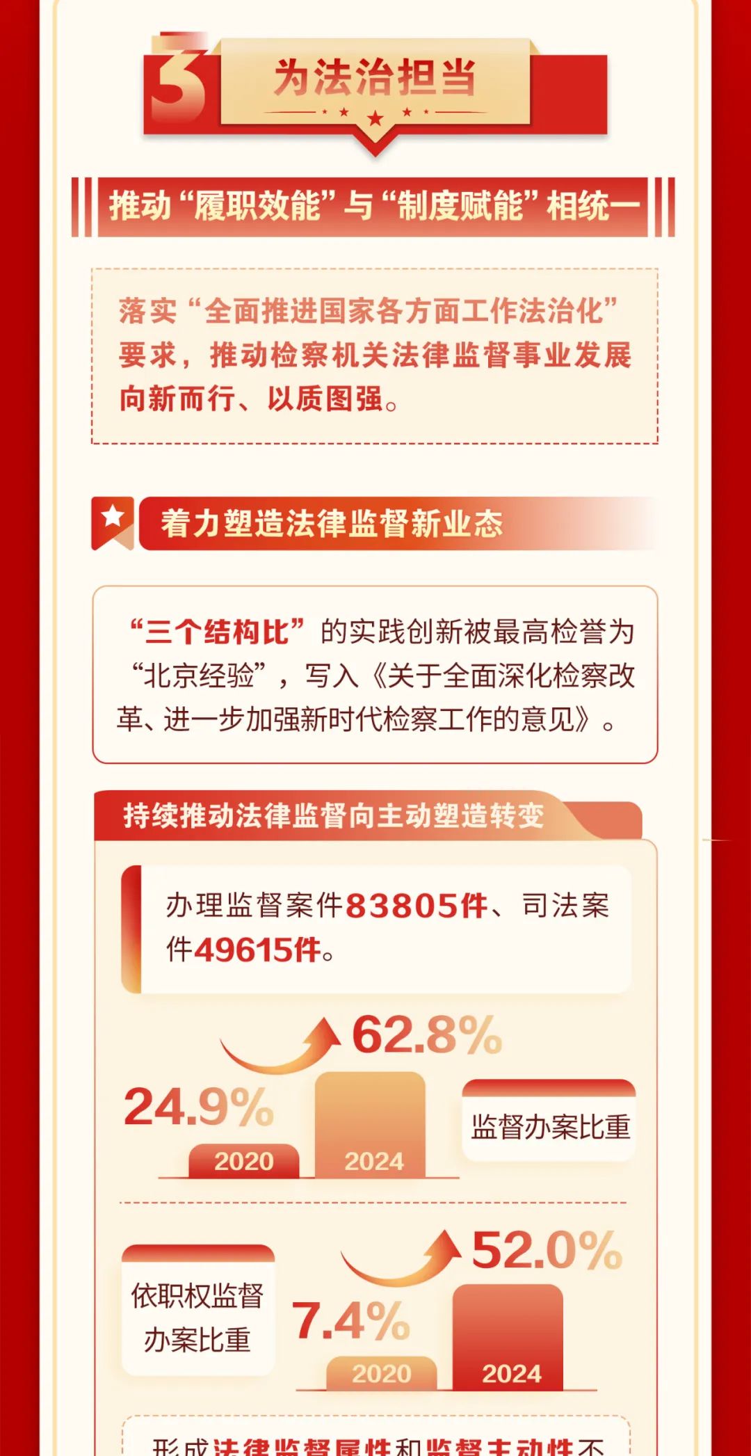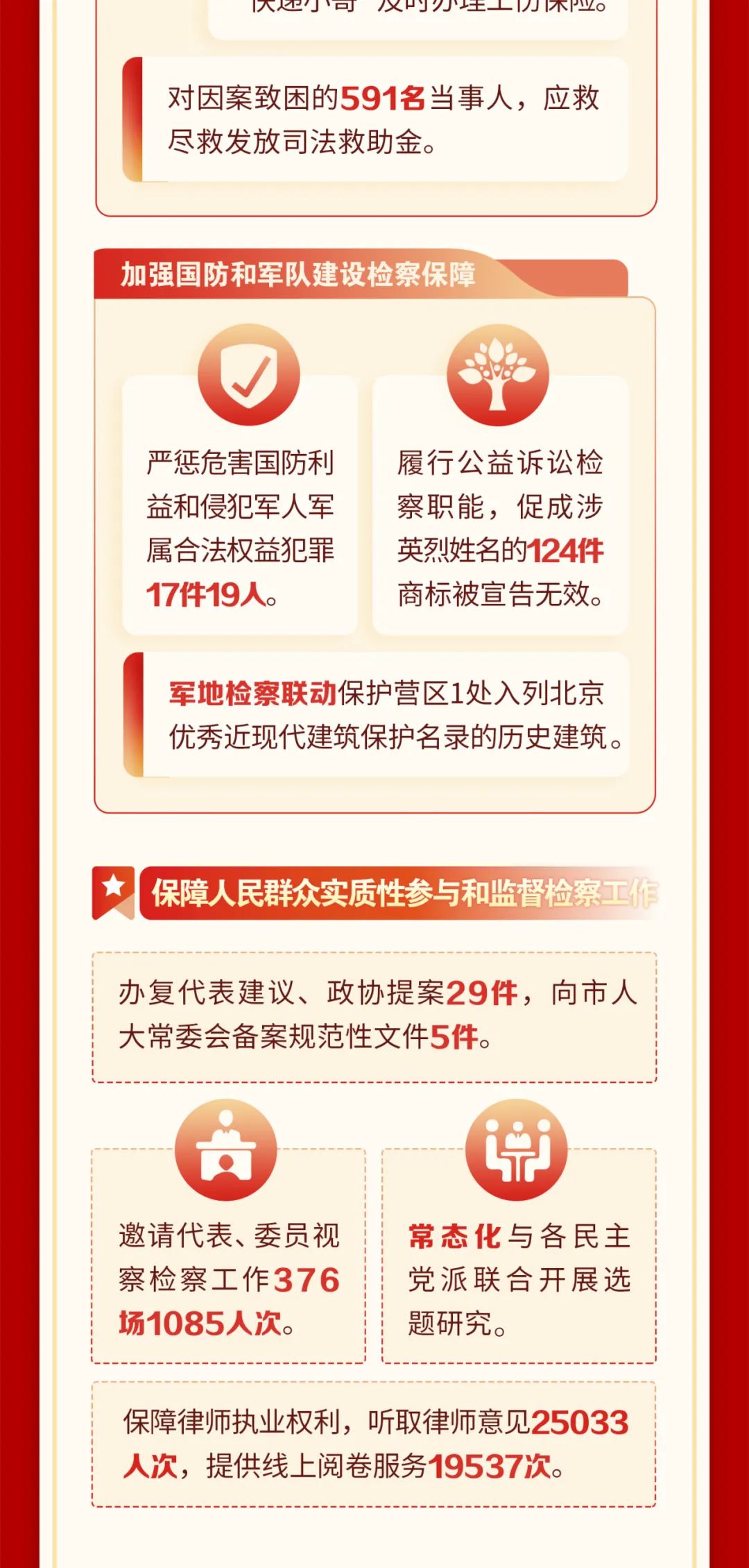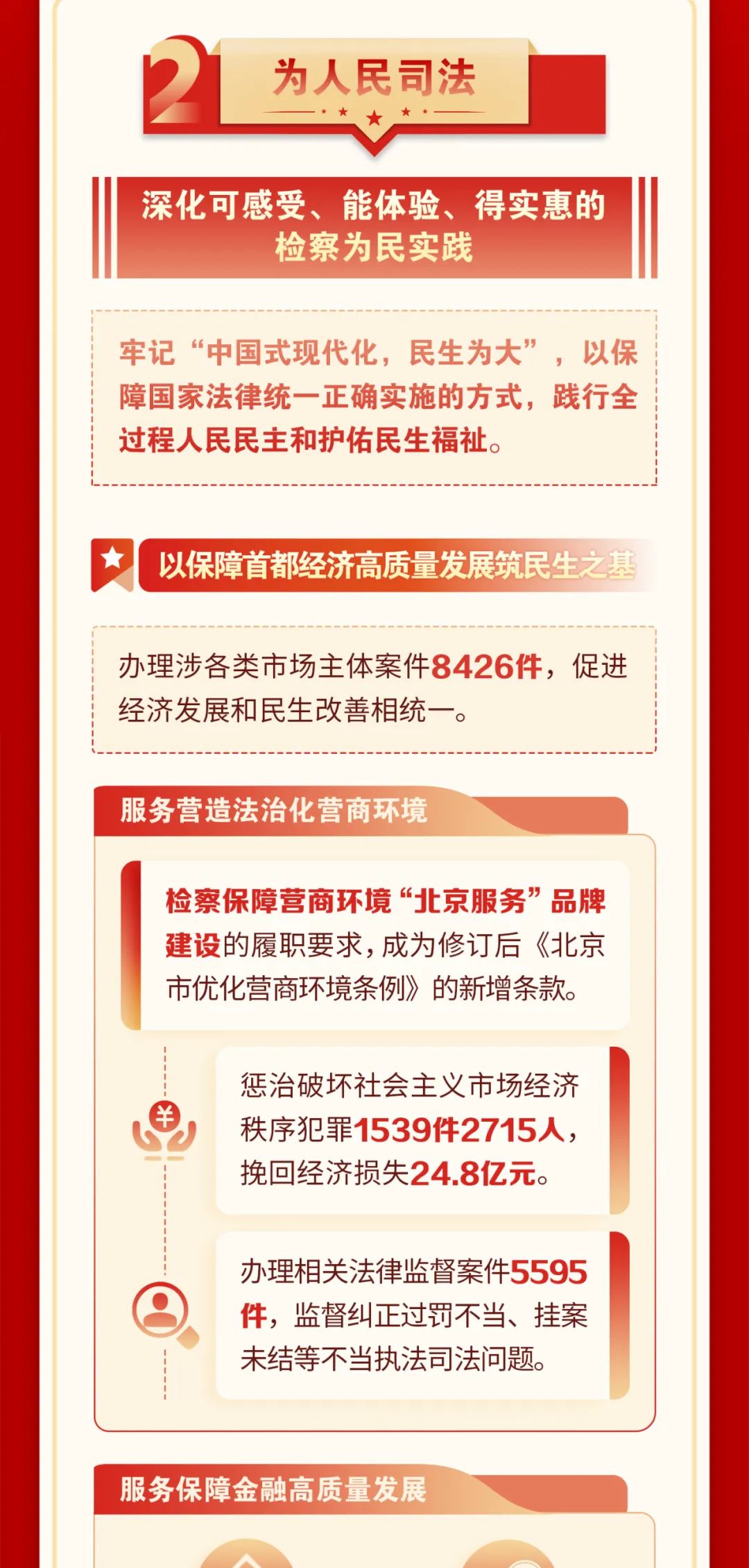 过去一年,全市检察机关在市委和最高检坚强领导下,在市人大及其常委会有力监督下,坚持以习近平新时代中国特色社会主义思想为指导,全面贯彻党的二十大和二十届二中、三中全会精神,深入学习贯彻习近平法治思想,坚定拥护“两个确立”、坚决做到“两个维护”,坚持党的领导、人民当家作主、依法治国有机统一,在为大局服务、为人民司法、为法治担当中守正创新,以推进检察工作现代化服务首都现代化建设。