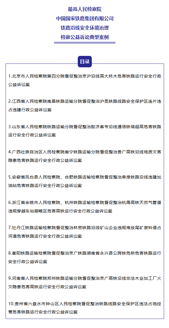 铁路沿线如果存在林木过于高大、通信铁塔超高等情况,可能会危害铁路运行安全。最高人民检察院、中国国家铁路集团有限公司1月18日发布一批检察公益诉讼典型案例。在这10件典型案例中,一批危害铁路运行安全的隐患问题被及时督促整治。