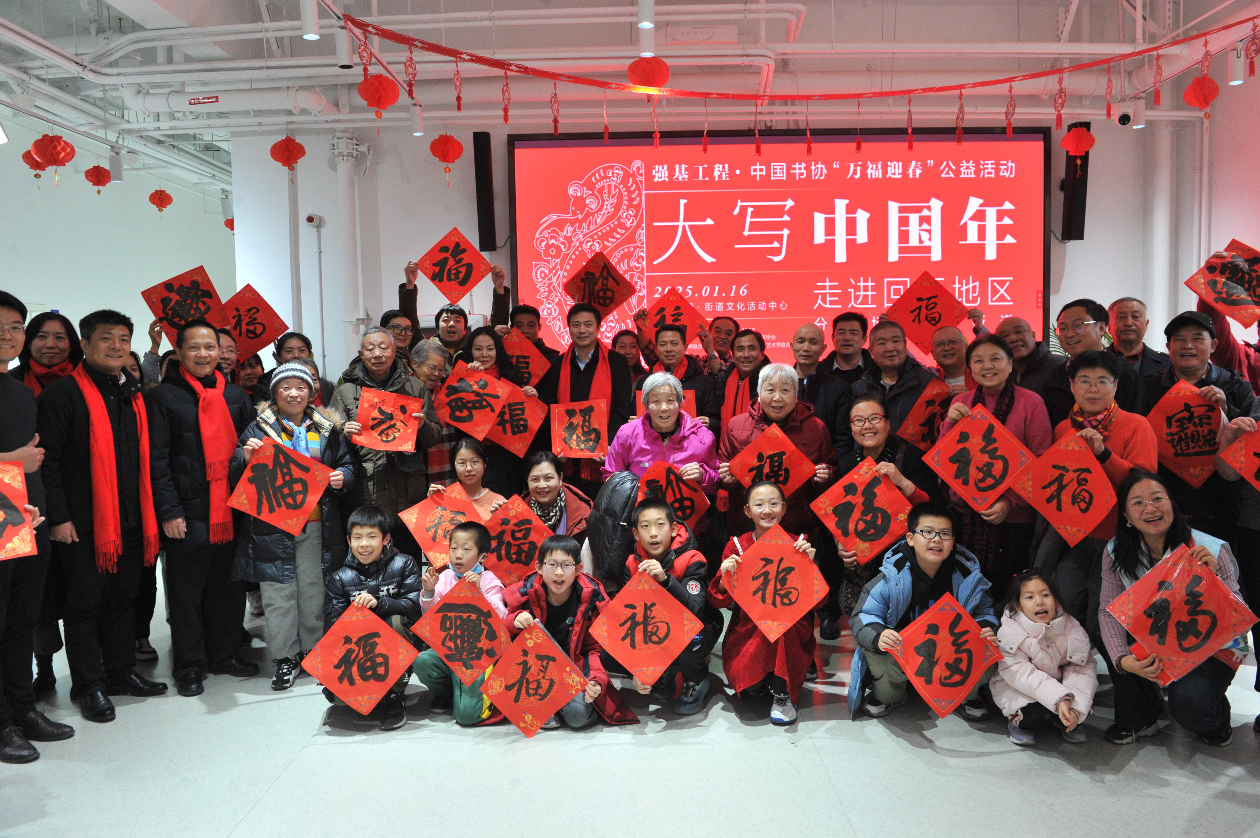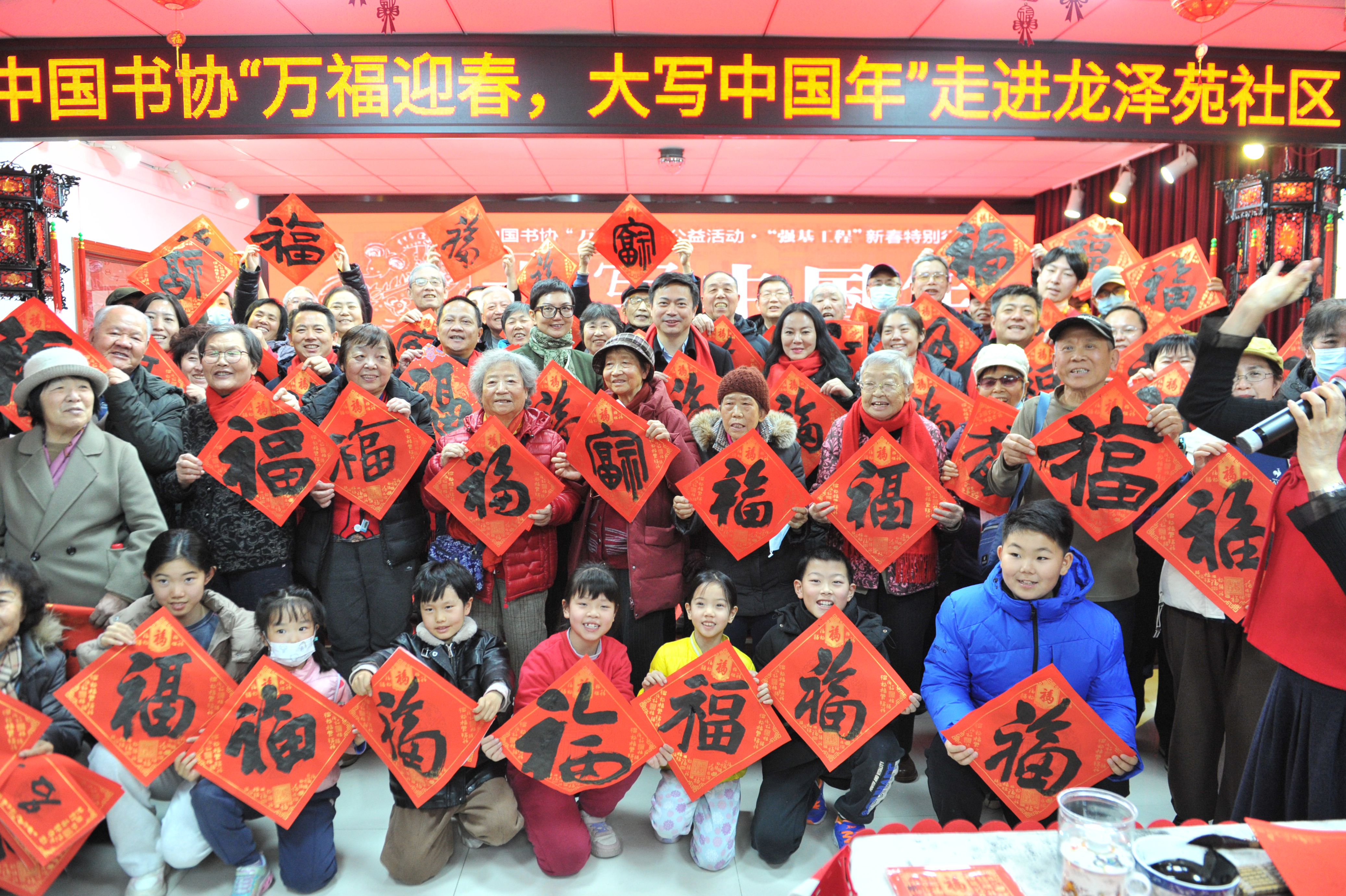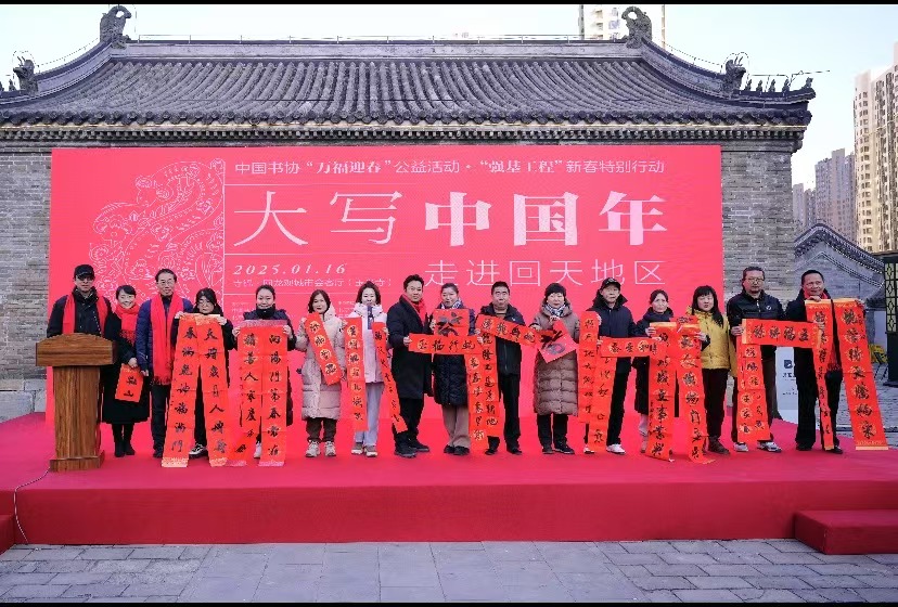 由中国书协、北京市文联、昌平区委宣传部主办的“万福迎春”公益示范活动“大写中国年”日前走进北京回龙观、天通苑地区,在寺锦·回龙观城市会客厅主会场及六个分会场同时举办。