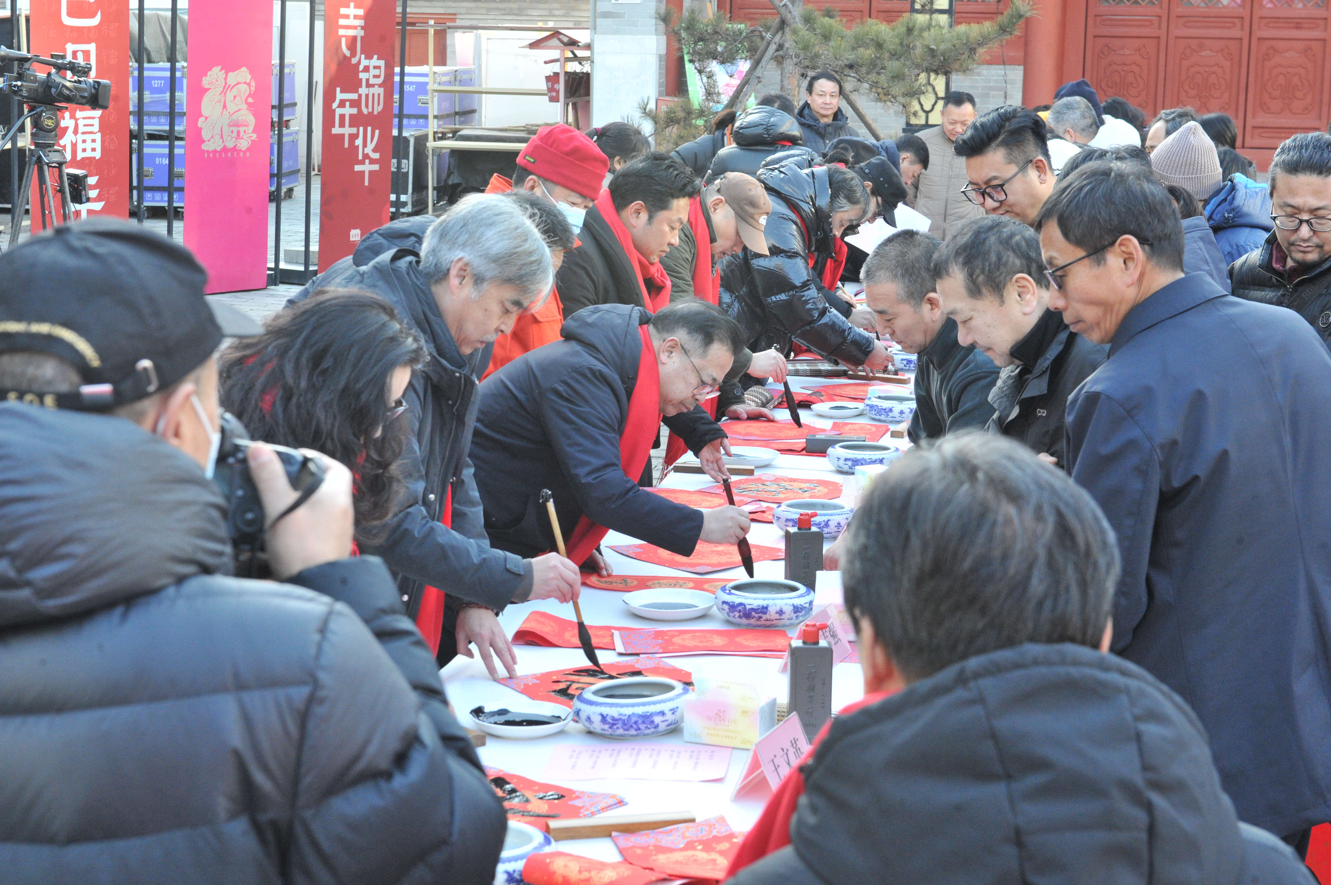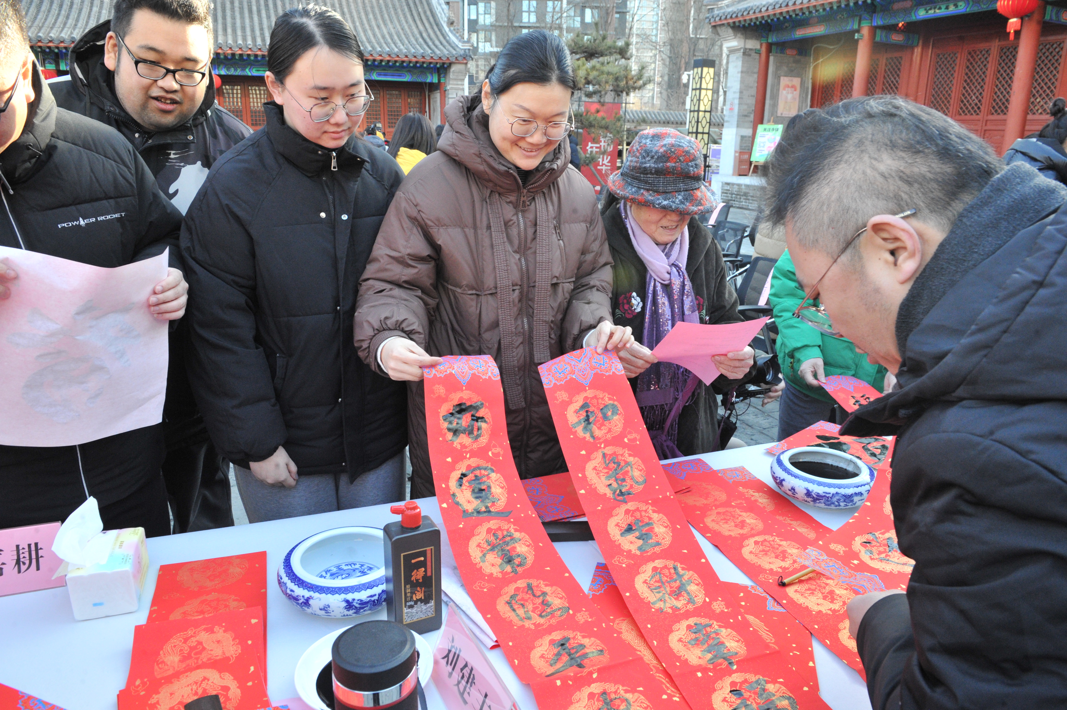 活动中,60位书法家齐聚,笔走龙蛇,挥毫泼墨,以笔墨为媒,以福字、春联为载体,让大家感受中国书法艺术魅力的同时,将新年祝福送到回天地区的千家万户。