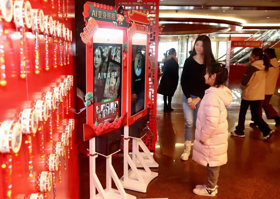 现代科技的融入,为传统文化增添了新的活力。AI智能拍照是此次活动最热门的打卡点之一,客群可以自由选择模板拍照,生成自己专属的写真照片带回家。