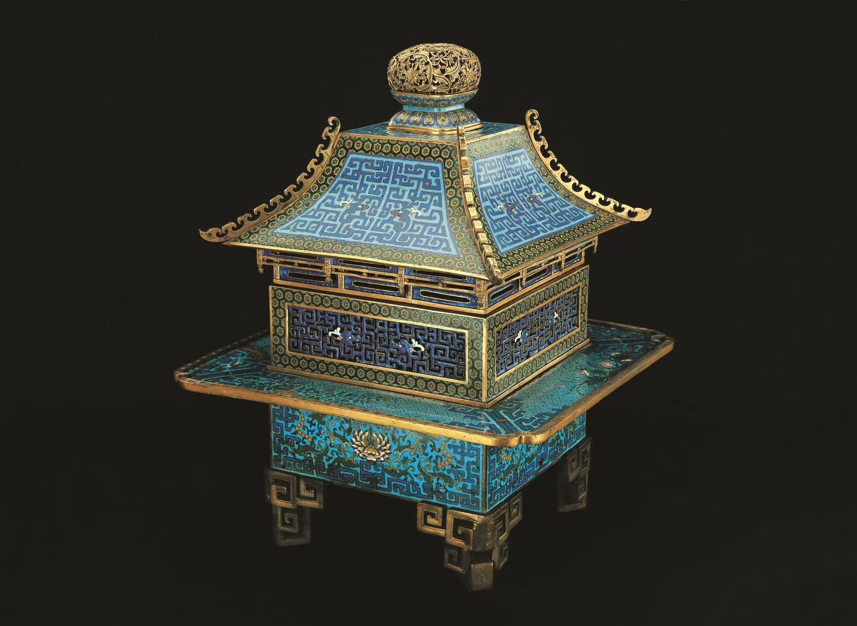 △清掐丝珐琅夔龙纹亭式熏炉 沈阳故宫博物院藏