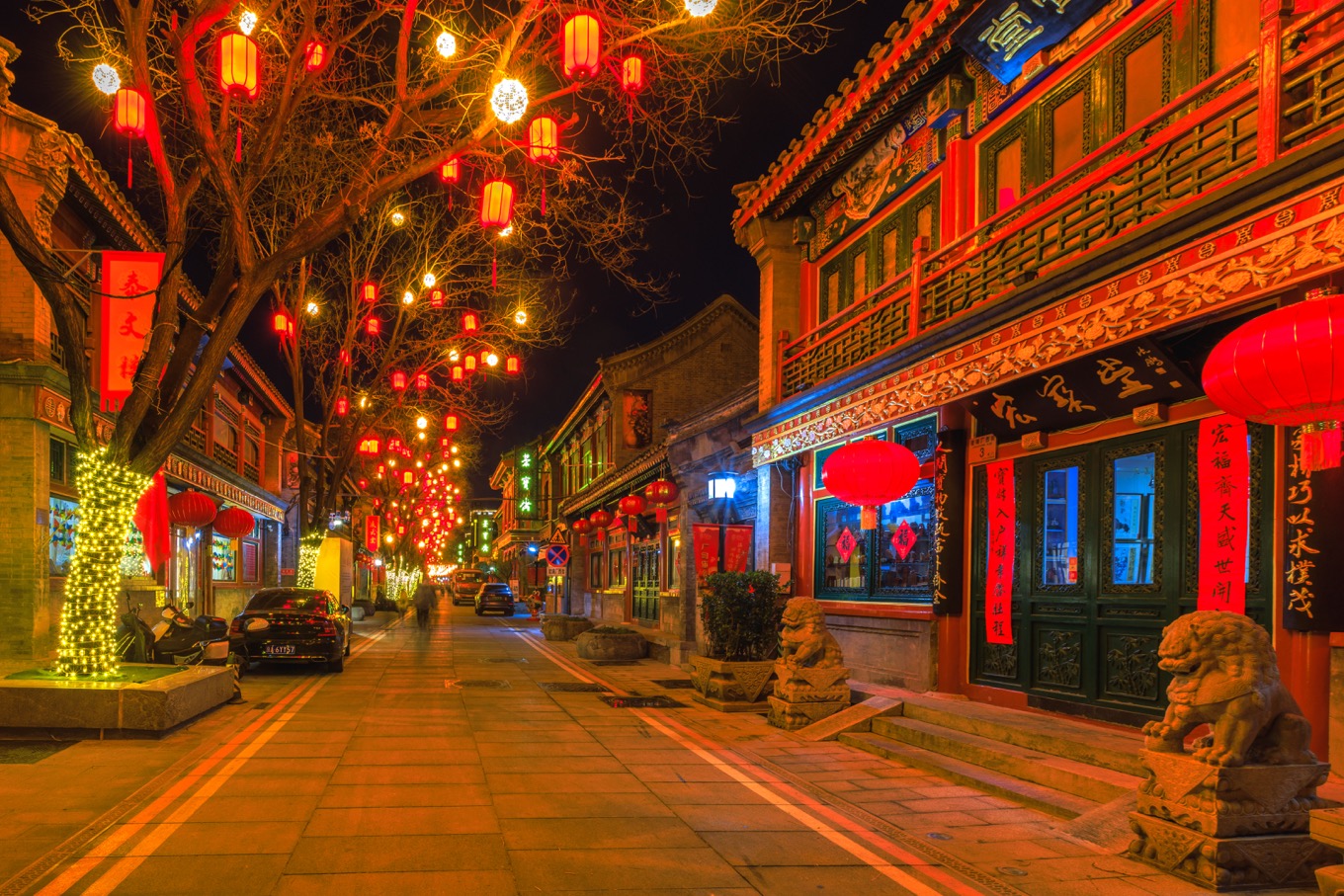 一盏盏红灯笼高高挂起,营造出节日的氛围。