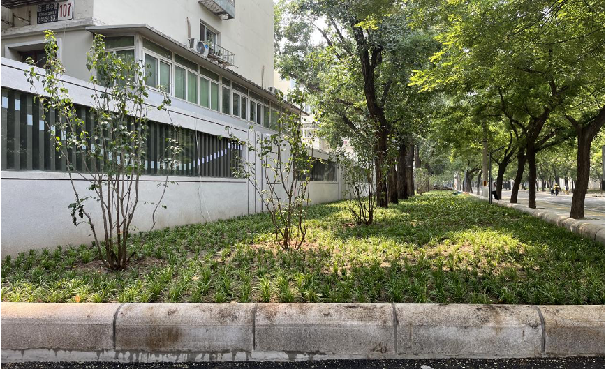 此外,针对翠微路南段(东侧)沿线绿化形式单一、地表植被局部缺失等情况,在“开墙透绿”的基础上,区城市管理委(交通委)也对该路段补种了绿植,通过完善上层乔木和地表植被的整体绿化搭配,呈现出具有层次感和空间感的城市街区环境,实现院内景观与街区景观的统一。