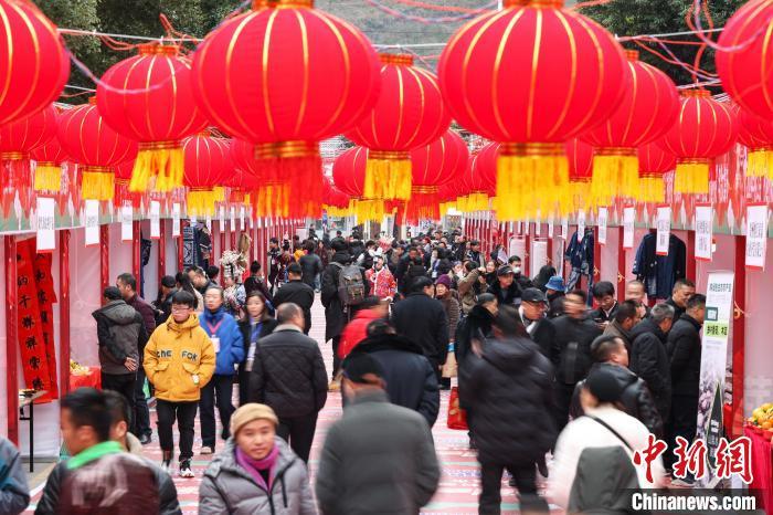 资料图:民众在“村超村晚”年货大集市选购商品。中新网记者 瞿宏伦 摄
