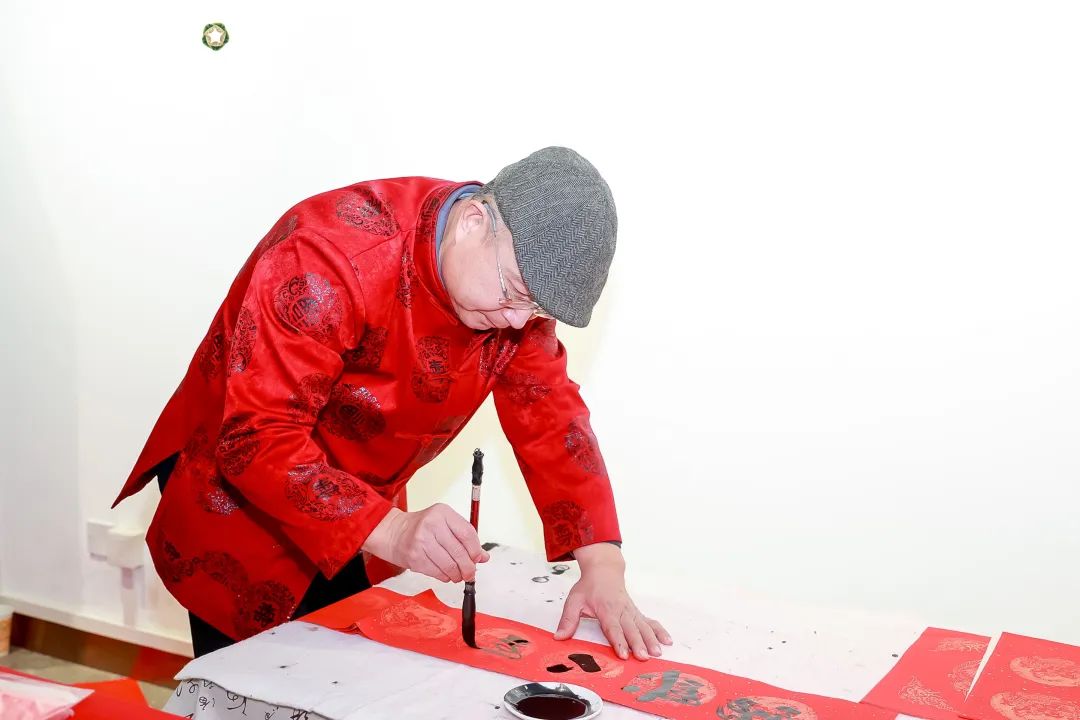 在手写春联的摊位前,身着红色中式服装的摊主喜气洋洋,一条长长的红纸铺开,随后提起毛笔挥毫泼墨,随着手腕的轻轻转动,苍劲有力的祝福跃然纸上,“福旺财旺运气旺 家兴人兴事业兴”,墨香与纸香交织。“这次的年货节就在园区里,我趁着午休的时候来逛一圈。不但可以转换心情,缓解压力,还能提前给家里置办点年货。”刚刚拿到对联的刘女士告诉记者。