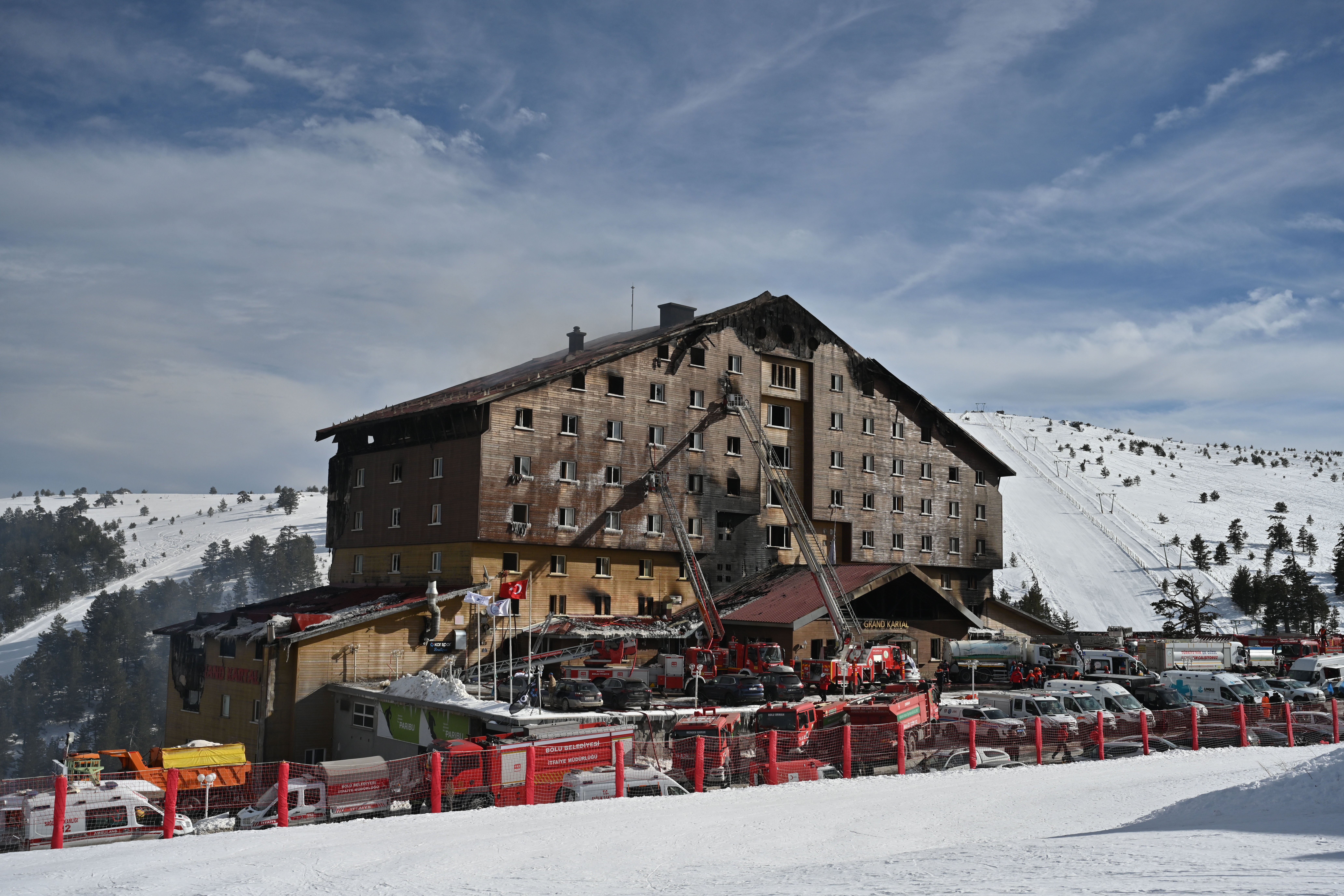 ↑1月21日,在土耳其卡塔尔卡亚,消防员在发生火灾的酒店工作。