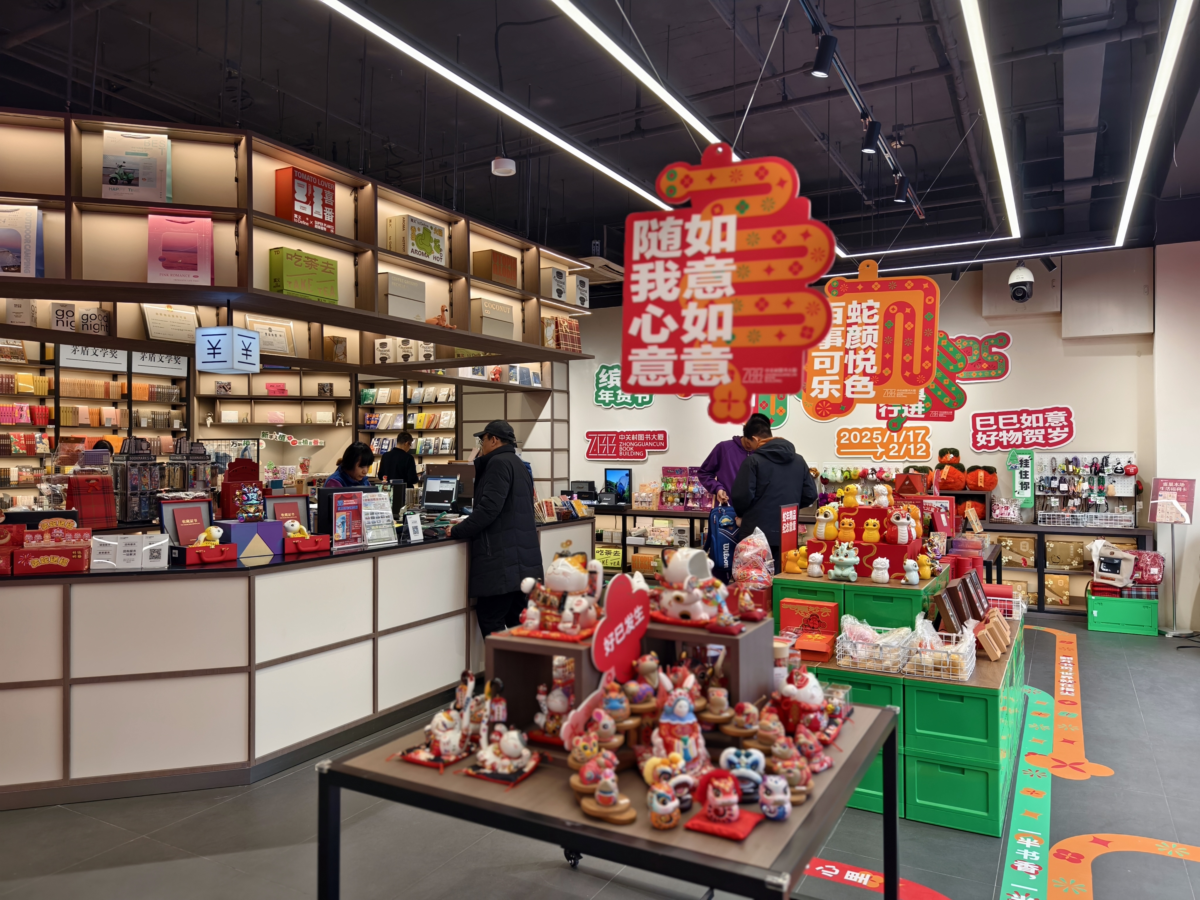 不仅如此,中关村图书大厦在节前已做好了图书、文创及相关文化产品的储备。书店一层、二层的年货“集市”从对联、福字、红包等年味十足的传统年货,到暖意融融的随身挂件、福禄立体剪纸摆件、生肖文化创意礼品、青少年礼品套装书、礼盒书,专柜、专架(台)重点陈列,搭配礼袋、礼盒、精美多元文创产品等,营造出浓厚的节日氛围。