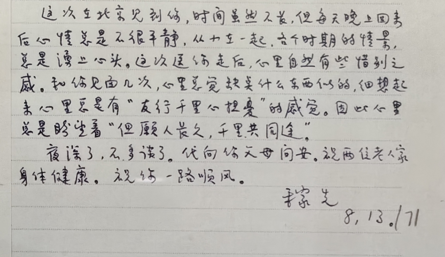 “但愿人长久,千里共同途”,“两弹一星”元勋邓稼先在一封写给杨振宁的信中,化用了这句千古名句,表达了他对国家未来的美好祝愿和对友谊的珍视。《立足常规,着眼新奇》一文的手稿,来自我国核物理、高能物理与高能天体物理学奠基人何泽慧,她分享了数十年积累的科学实验经验,展现了她尽量利用简单实验条件做出有意义的研究结果的理念。