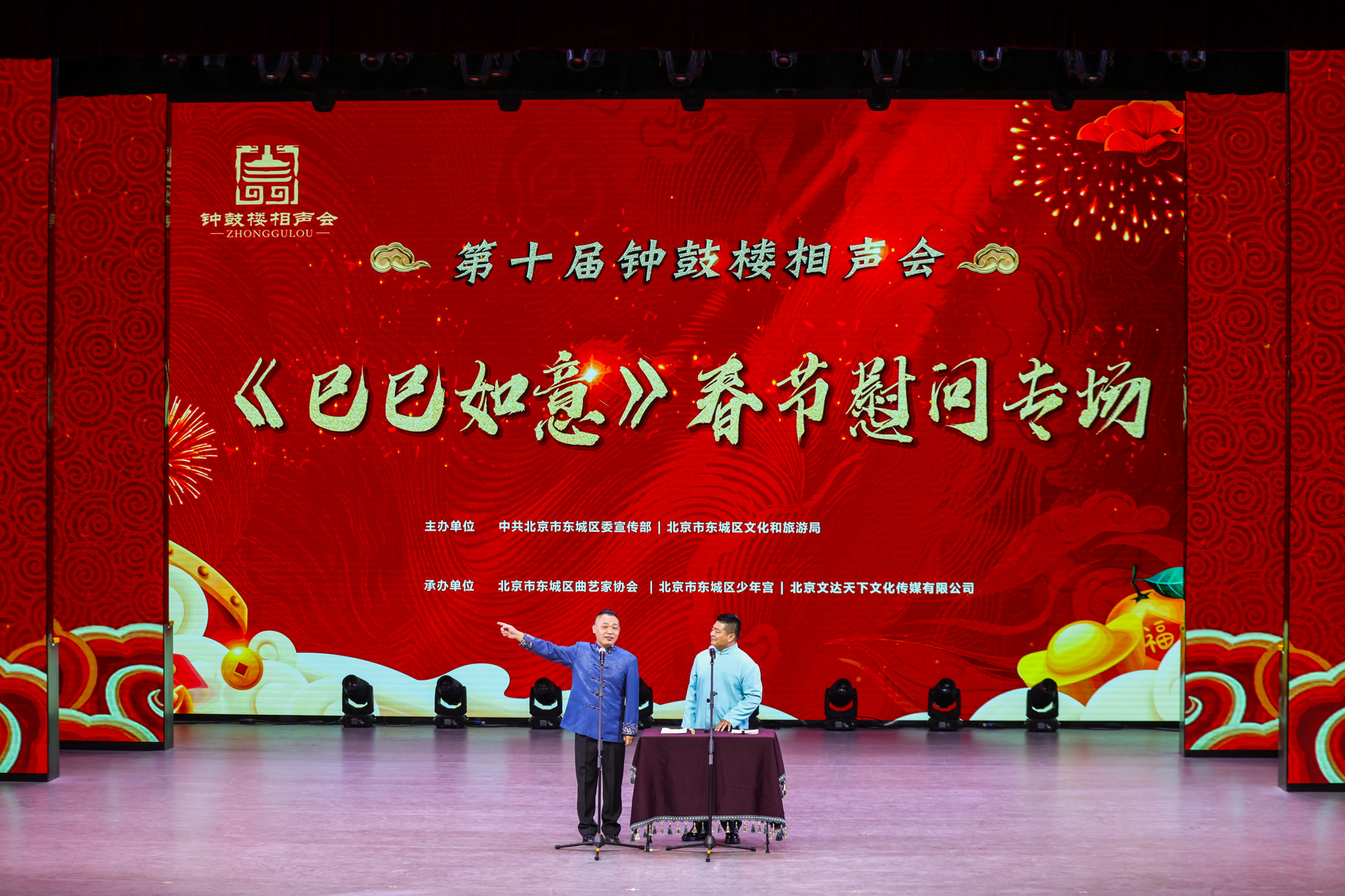 1月22日晚,时值小年夜,第十届钟鼓楼相声会《巳巳如意》春节慰问专场在东城区少年宫剧场火热开演。