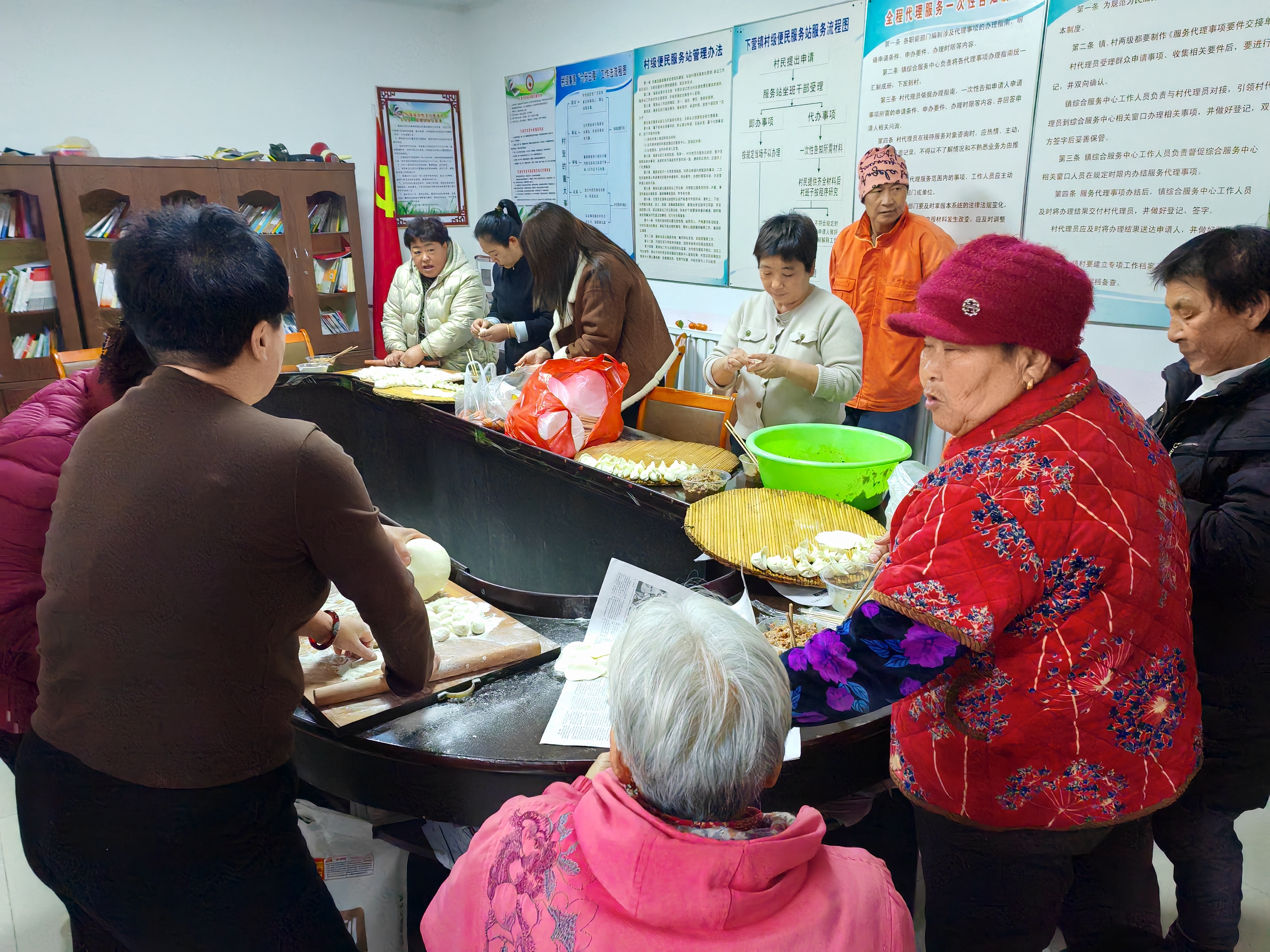 活动现场,大家围聚在桌前,齐心协力包饺子。饺子皮在手中灵活翻转,馅料被精准包裹,形态各异的饺子摆满了案板,每一个都承载着对新年的美好期许。