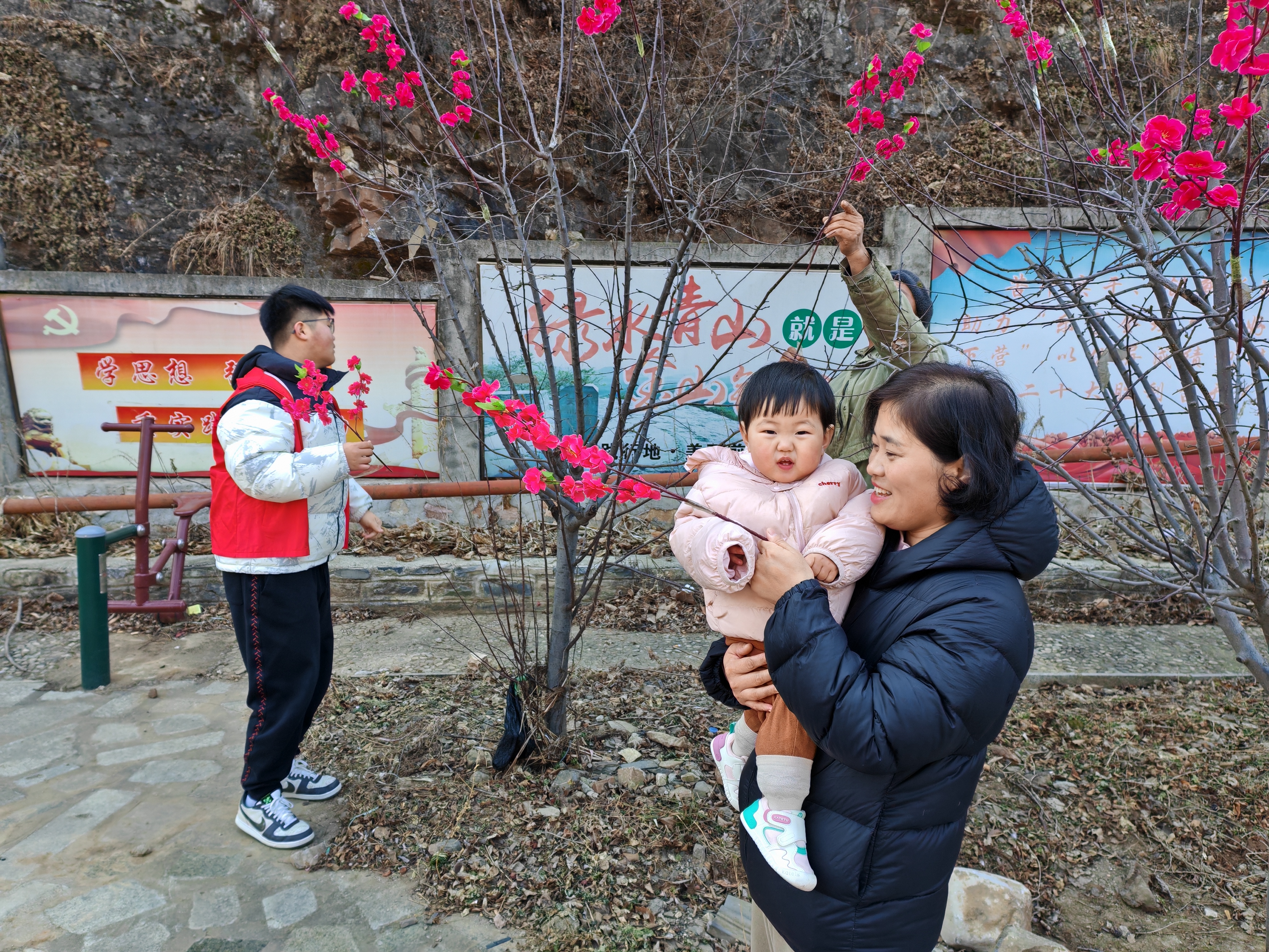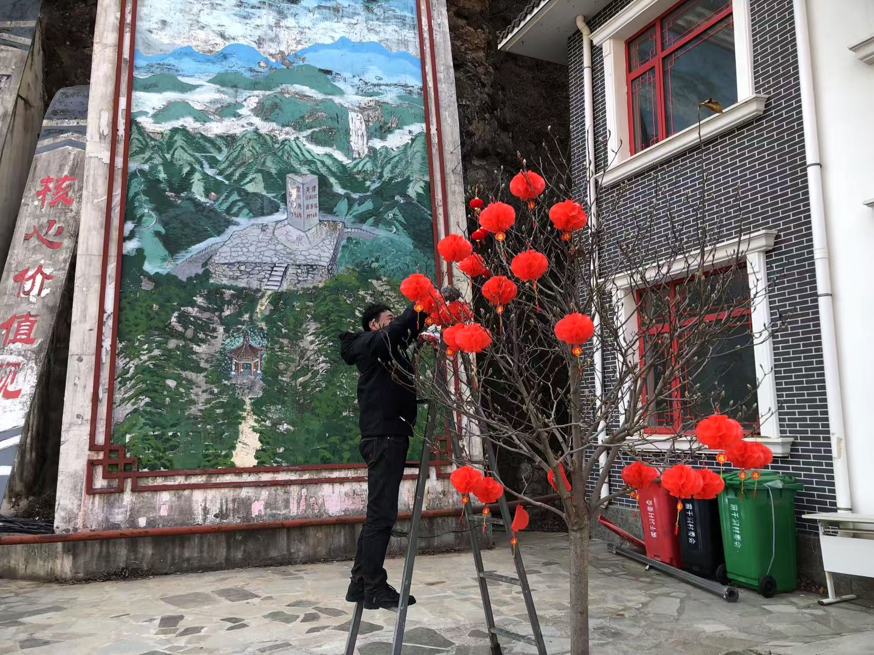 来自三地四村的小朋友们精心挑选娇艳的花朵,仔细地绑扎在树枝上。一朵朵红花在枝间摇曳生姿,为节日增添了一抹喜庆色彩。大家欢声笑语,互相欣赏,其乐融融。