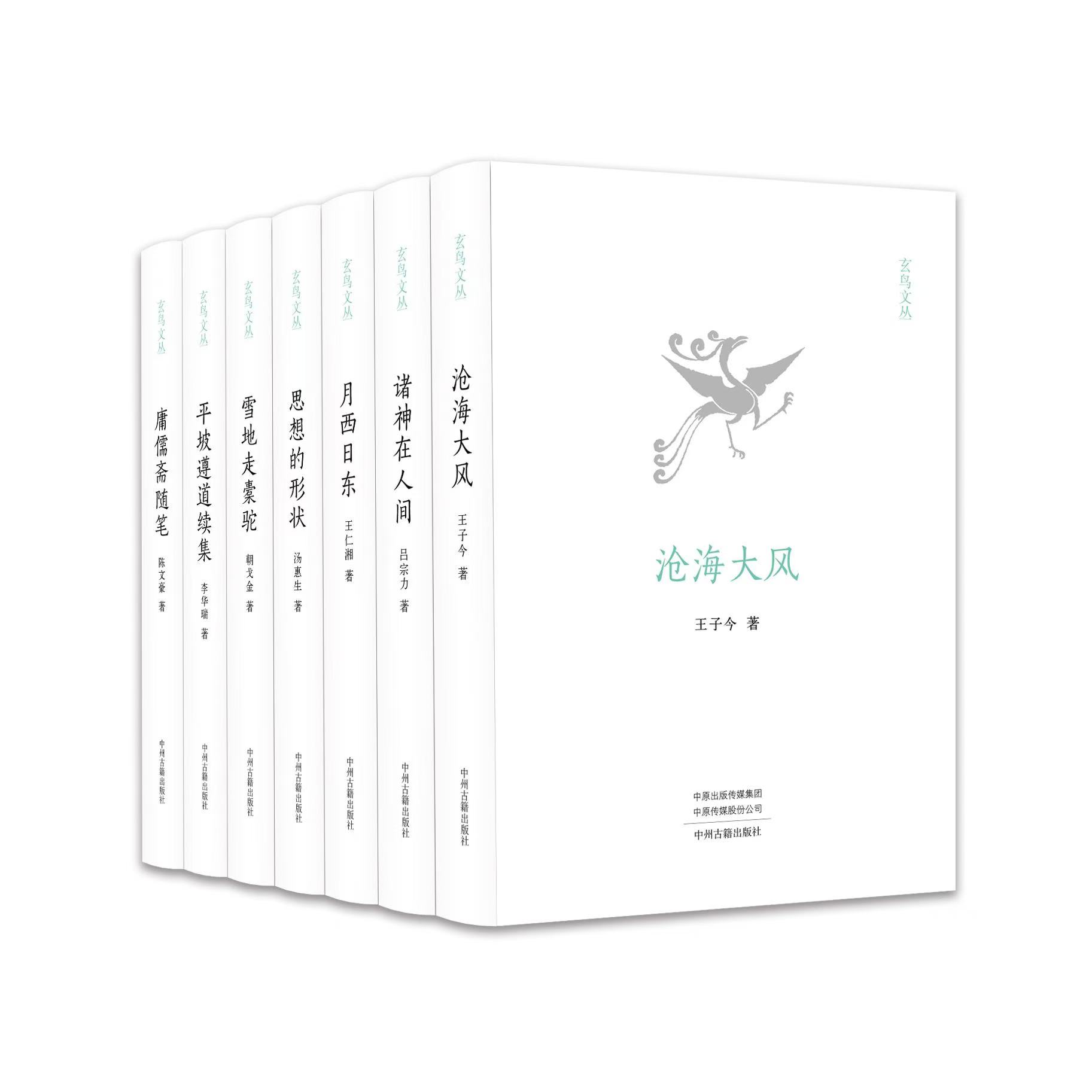 “玄鸟文丛”是一套学术随笔集,由中州古籍出版社出版,共7册,为王仁湘《月西日东》、吕宗力《诸神在人间》、王子今《沧海大风》、陈文豪《庸儒斋随笔》、汤惠生《思想的形状》、李华瑞《平坡遵道续集》、朝戈金《雪地走橐驼》,分别从考古学、中国史、民俗学、文学出发,介绍学术界发展的前沿思想和最新动态,以及学者们的见解和学术札记。